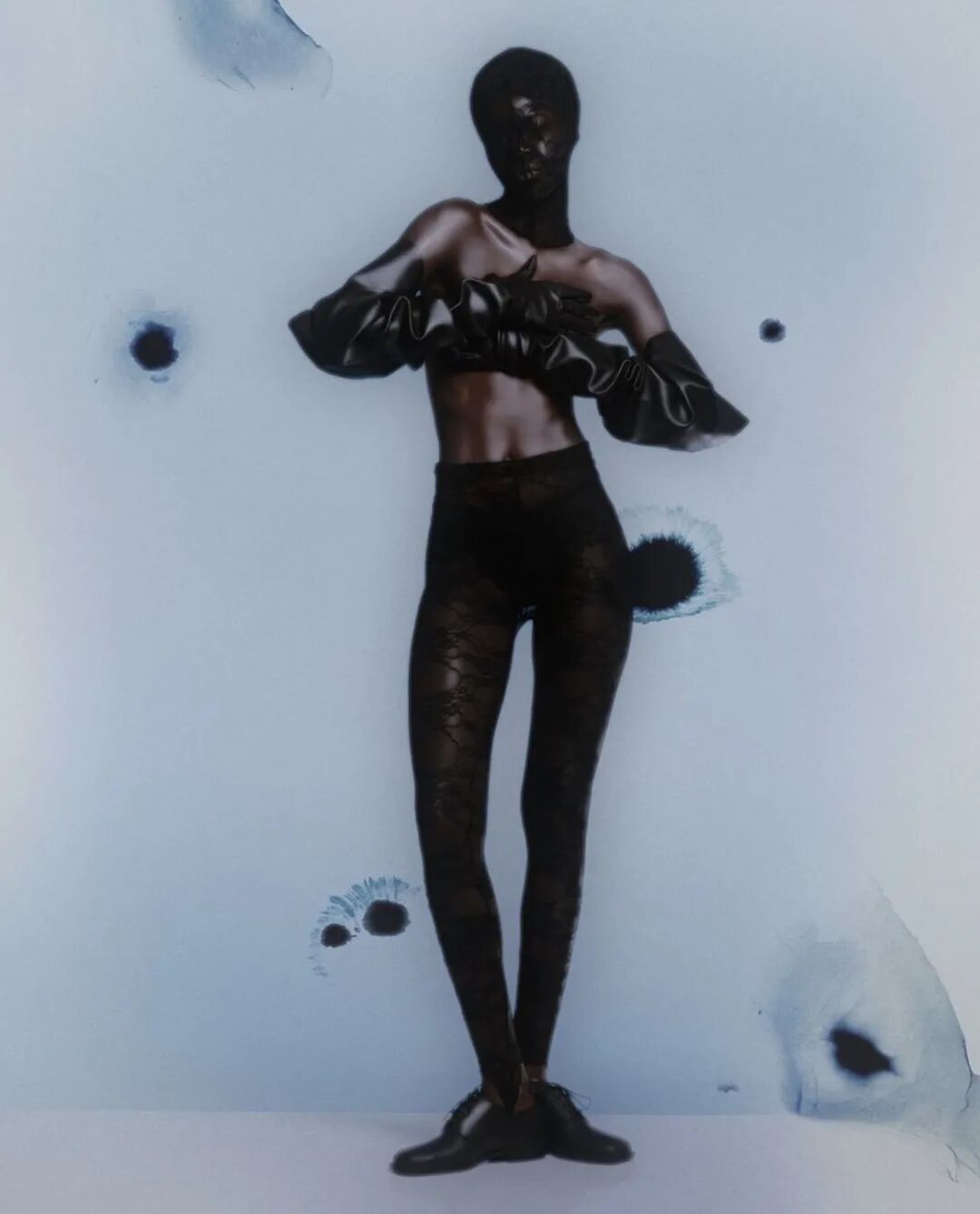 常以简洁利落的黑白色轮廓为核心,简约纯粹而直击人心。受到3D技术的启发,她以雕塑技术制编出模型,并将液态硅树脂注进了模型当中,由树脂制品的模型来塑造独一无二的时装轮廓。