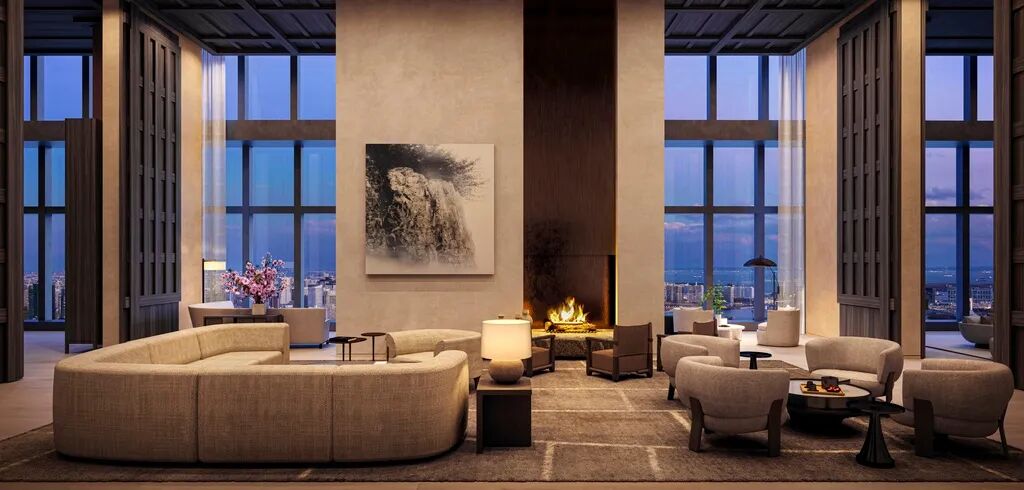 将与JANU一同现身该项目的,还有位于330米高的A塔顶部(54-64F)的安缦东京公馆。将含91个豪宅单元和一系列周全配套。这部分设计由Yabu+Pushelberg包干。