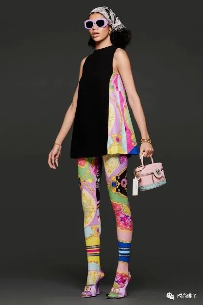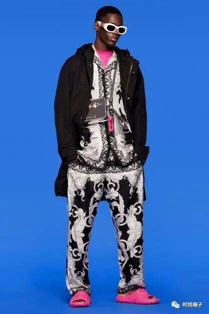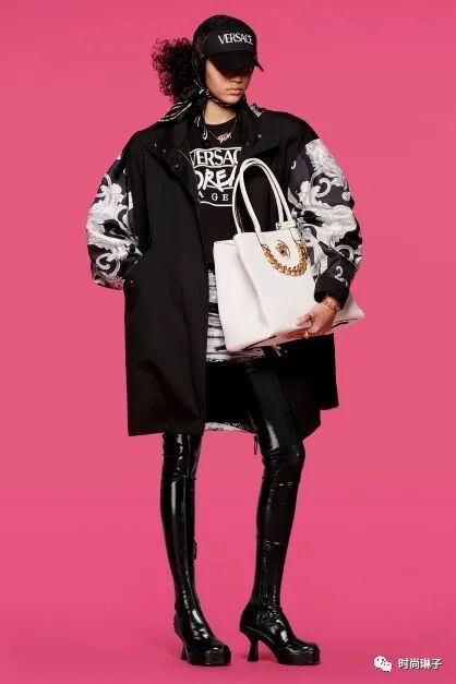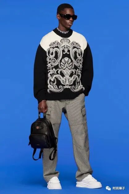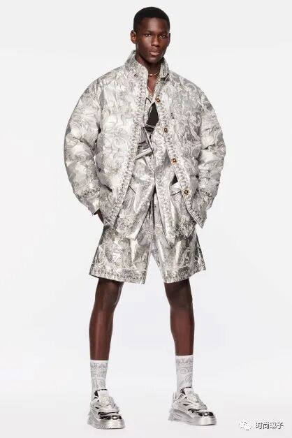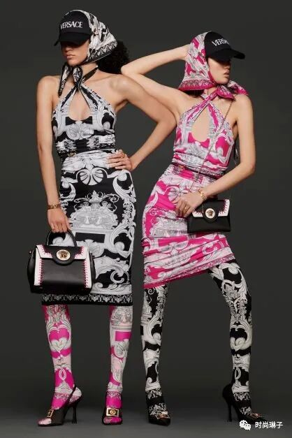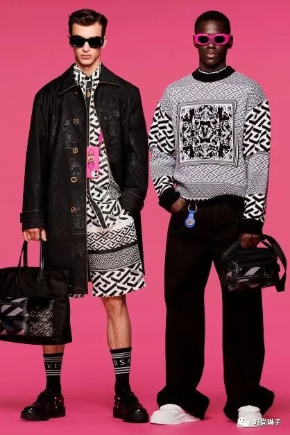 系列中品牌标志性的巴洛克Barocco风格图案没有了颜色,变成了黑白。Donatella Versace 将创造力视为一种机会和方式,从另一个角度看待人们一生中所了解的事物,将它们转化为新事物,将过去与现在连接。
