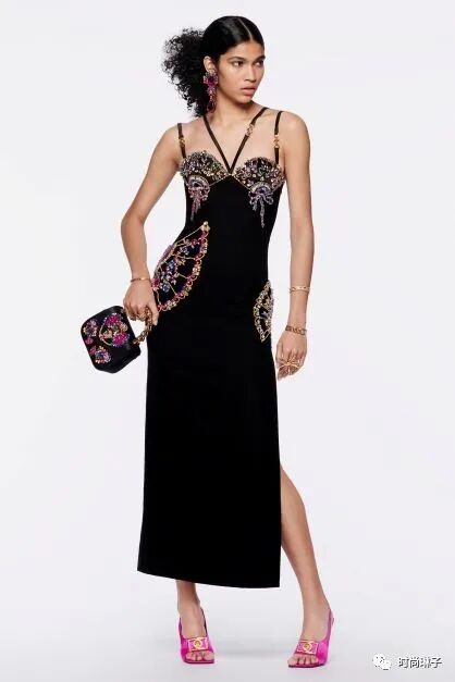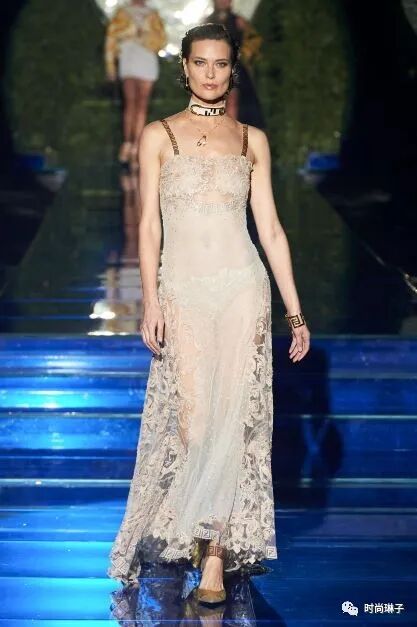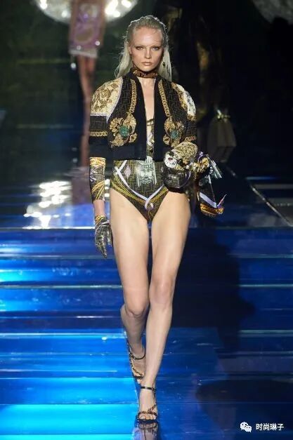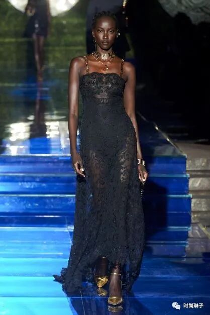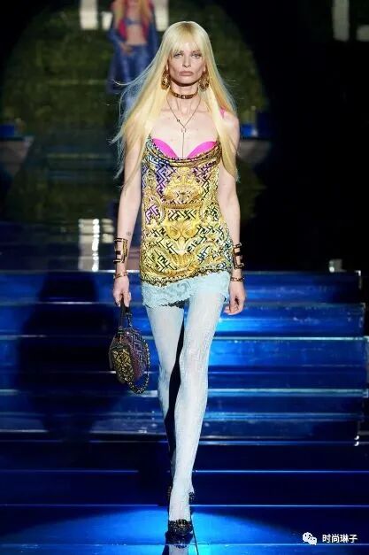 该季参考了2000年早期的美学,性感紧身的款式仍是亮点,在风格和面料上是纯粹的范思哲Versace。