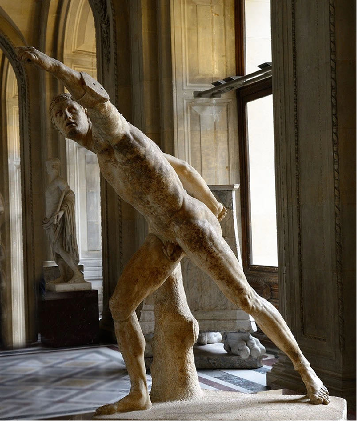 收藏于法国巴黎卢浮宫的《Borghese 的角斗士》,是公元前100年左右的希腊化末期的作品,曾被誉为“最完美的雕塑之一”,是历代雕塑学习者的重要范本,1812年法国艺术家尼古拉·乌特金出版了《角斗士解剖学》一书,系统地对其进行了详实深入的研究。