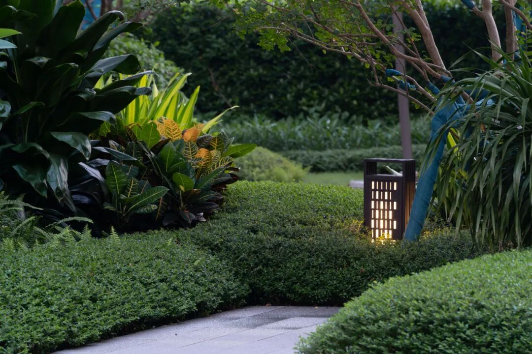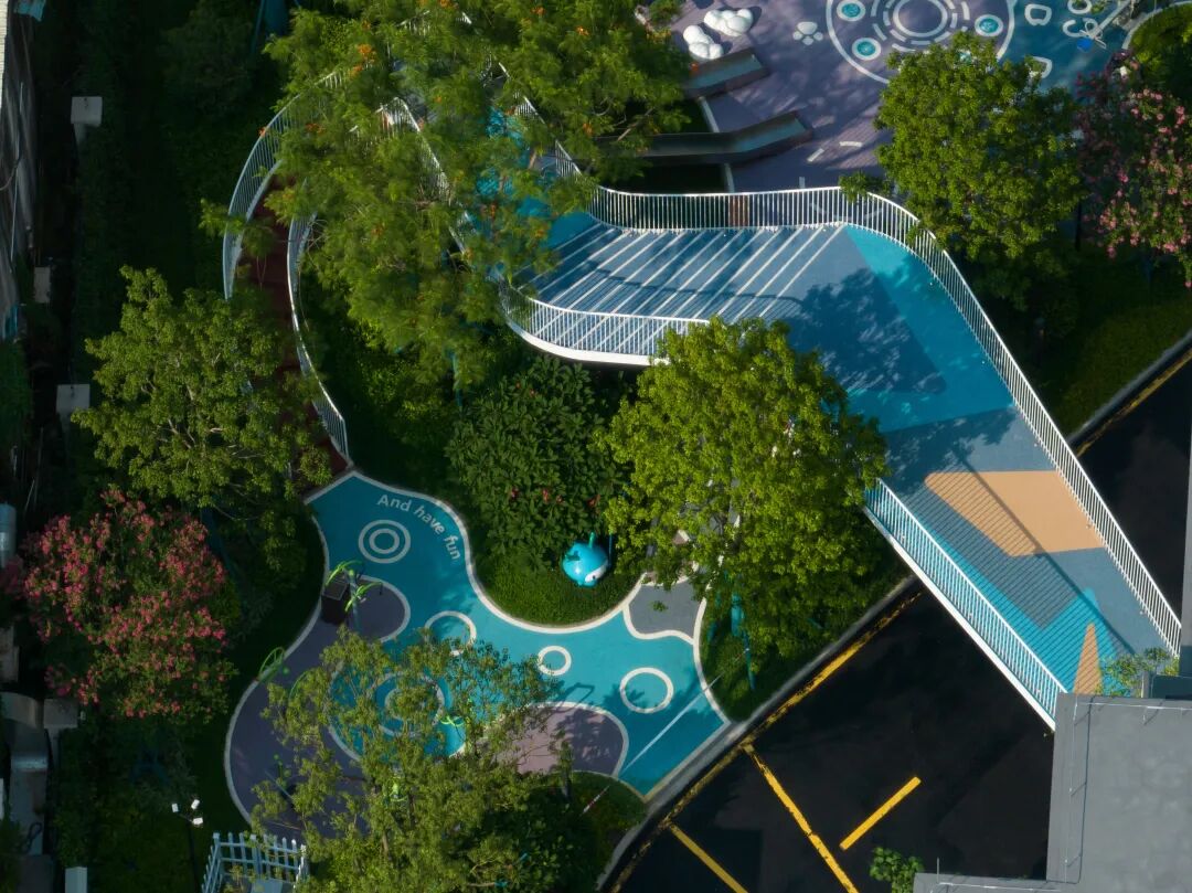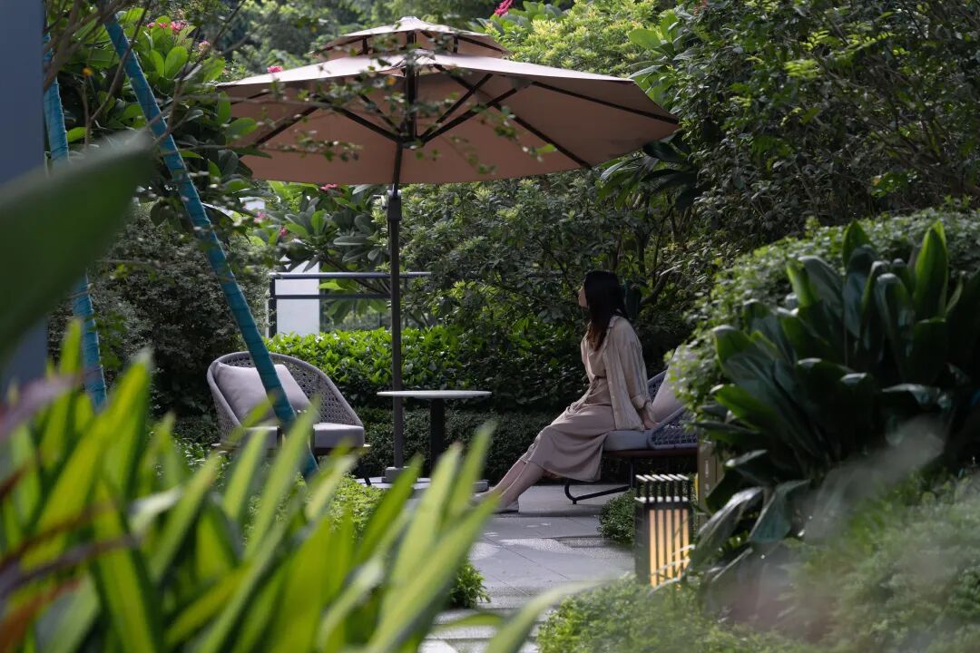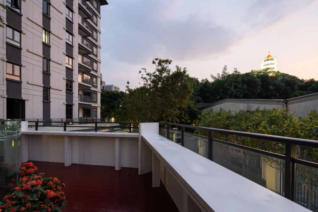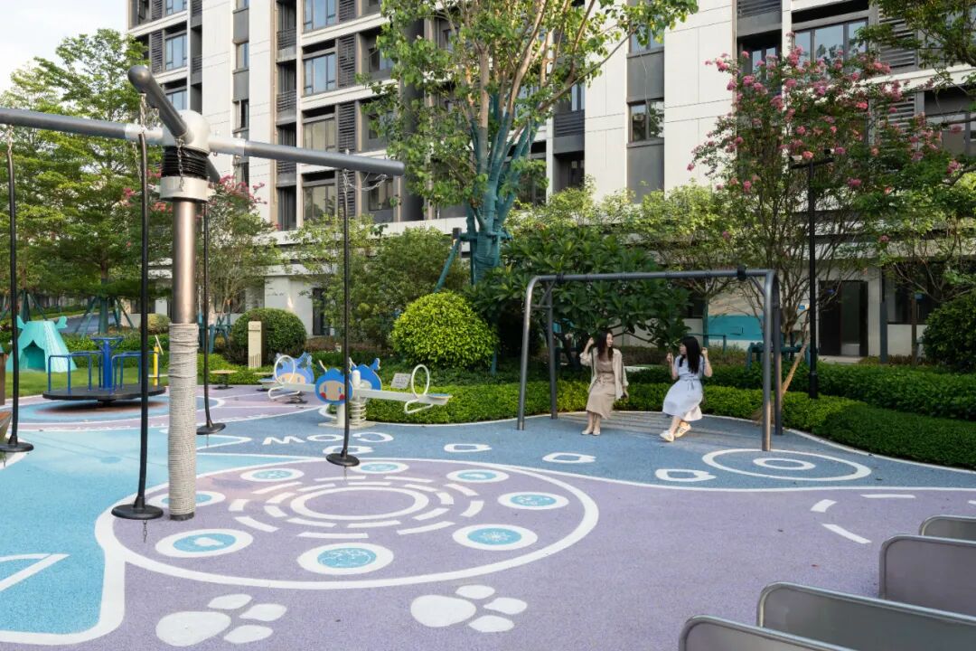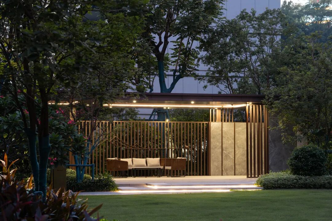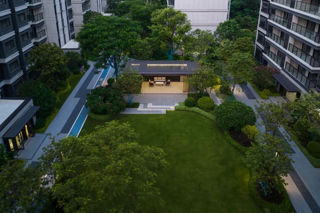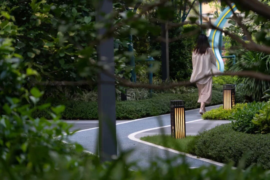 运用“障景”的手法,一步一景,打造曲径通幽的美景,经过枝繁叶茂的香柚迎宾道(香柚寓意“佑子”)后,便是别有洞天的游园见林,令人豁然开朗。