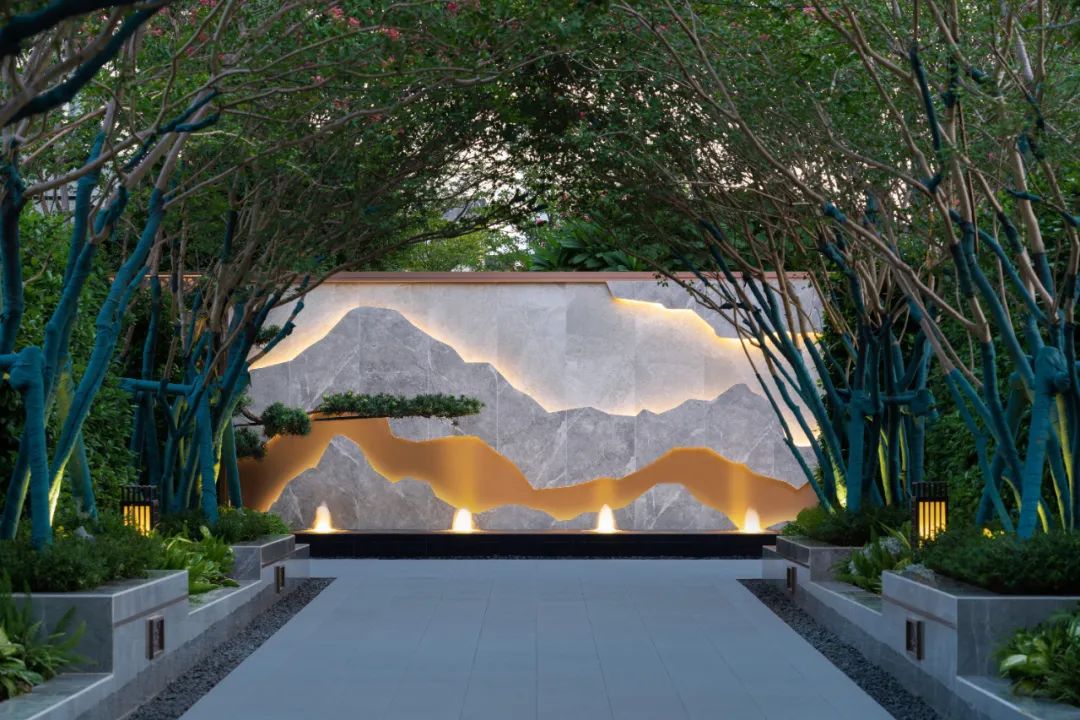 仿照传统府序前的卧石青松,由植物造景大师亲手打造,这是我们送给业主最尊贵的入户仪式和最好的寓意祝福。