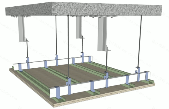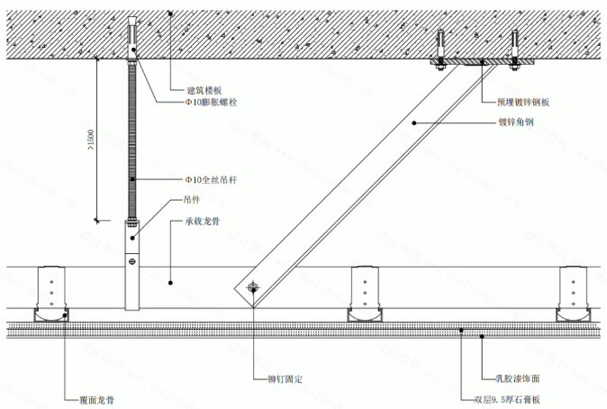 2、当吊杆长度>2500mm时,应设置钢架转换层。