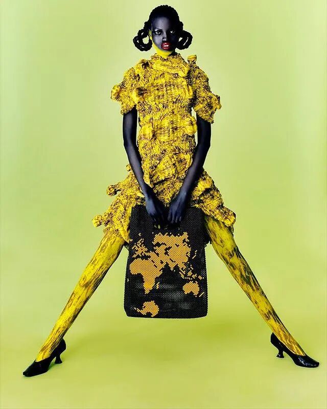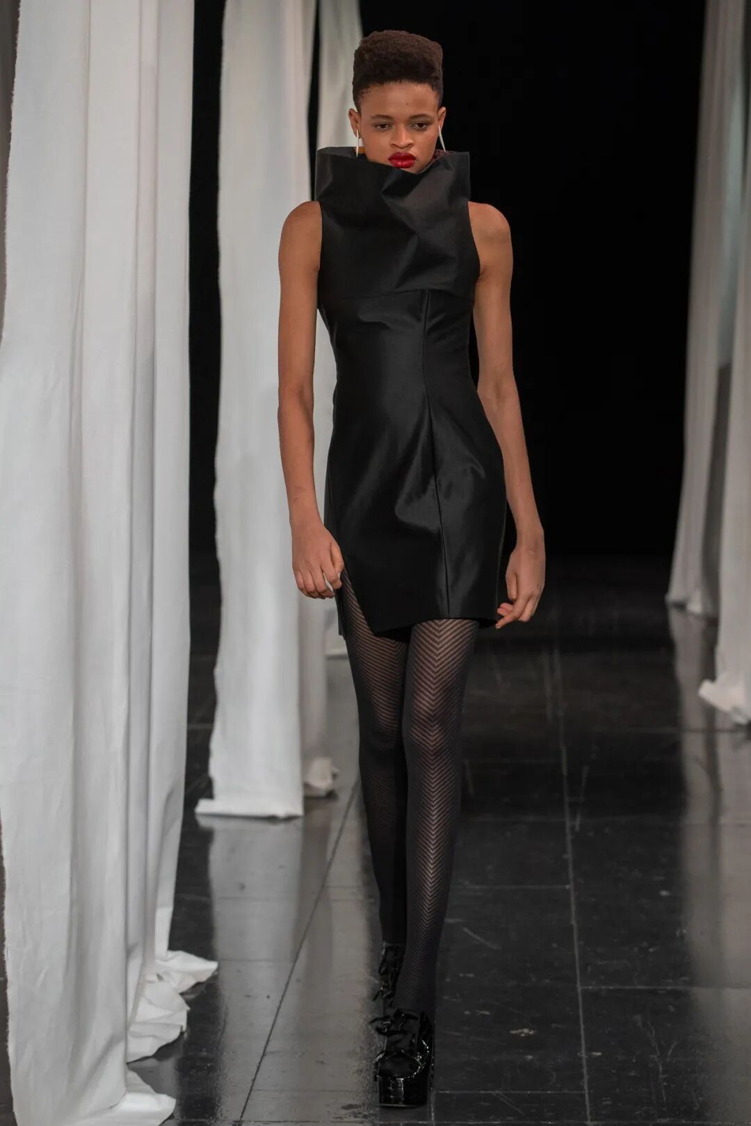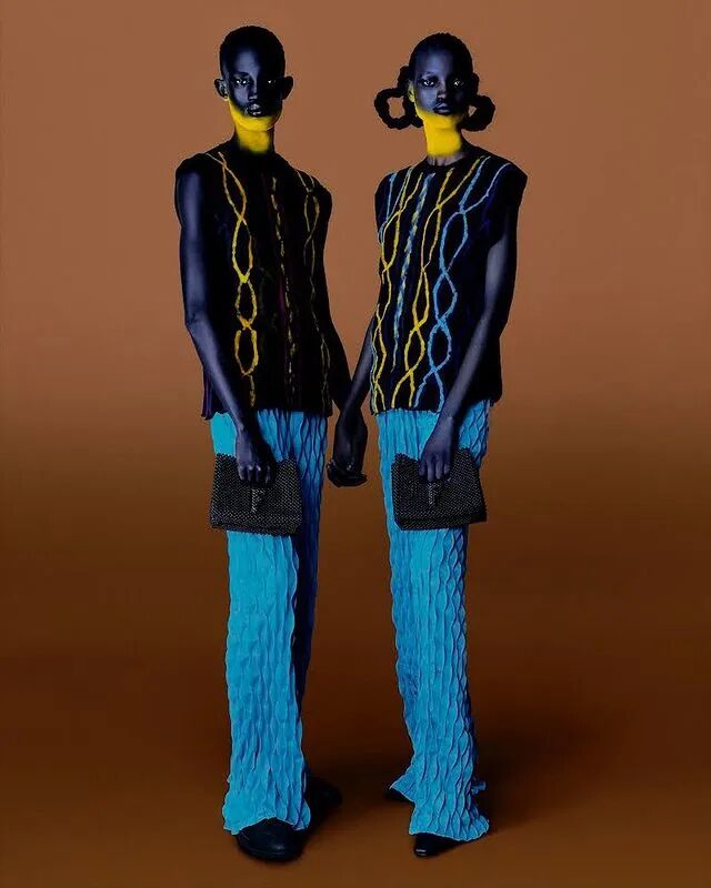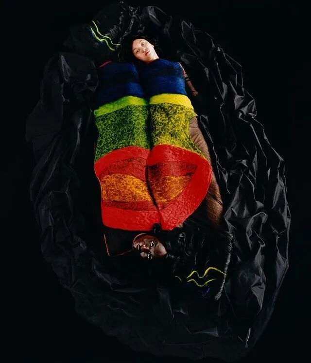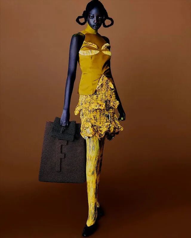 明艳的色彩与黑色的皮肤,拙朴的针织纹样表达着最浓烈的情感和最原始的生命力。这是Feben的作品给人的强烈感受。品牌系列中除了不规则的裁剪以及突起的球根状褶皱,她的设计还突出了胸部和臀部以更好地铁和女性的曲线。