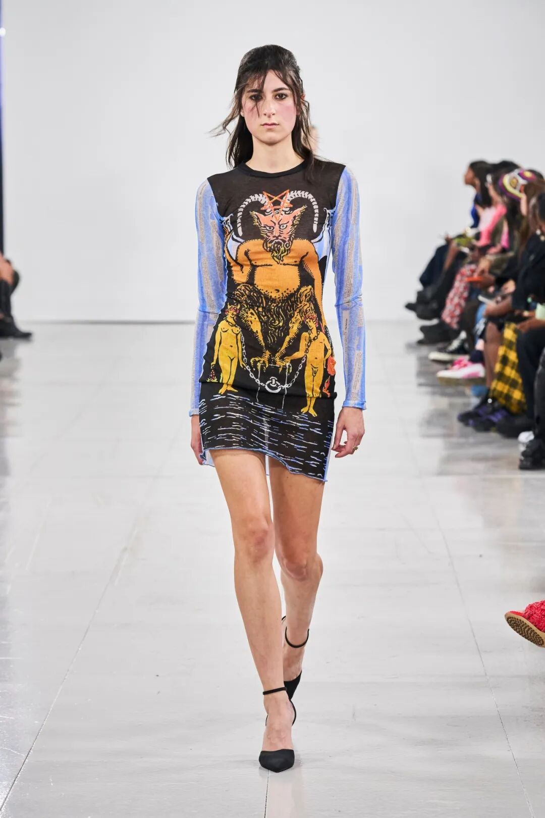 Feben的最新系列以设计师向内观照的感受为基础,在克服逆境这样的背景下,Feben Vemmenby探索了有关的精神主题,设计师提到了每个人对于塔罗牌的不同解读,并将对于设计师而言具有特殊意义的战车牌、恶魔牌和高塔牌运用在不同服装的印花上。