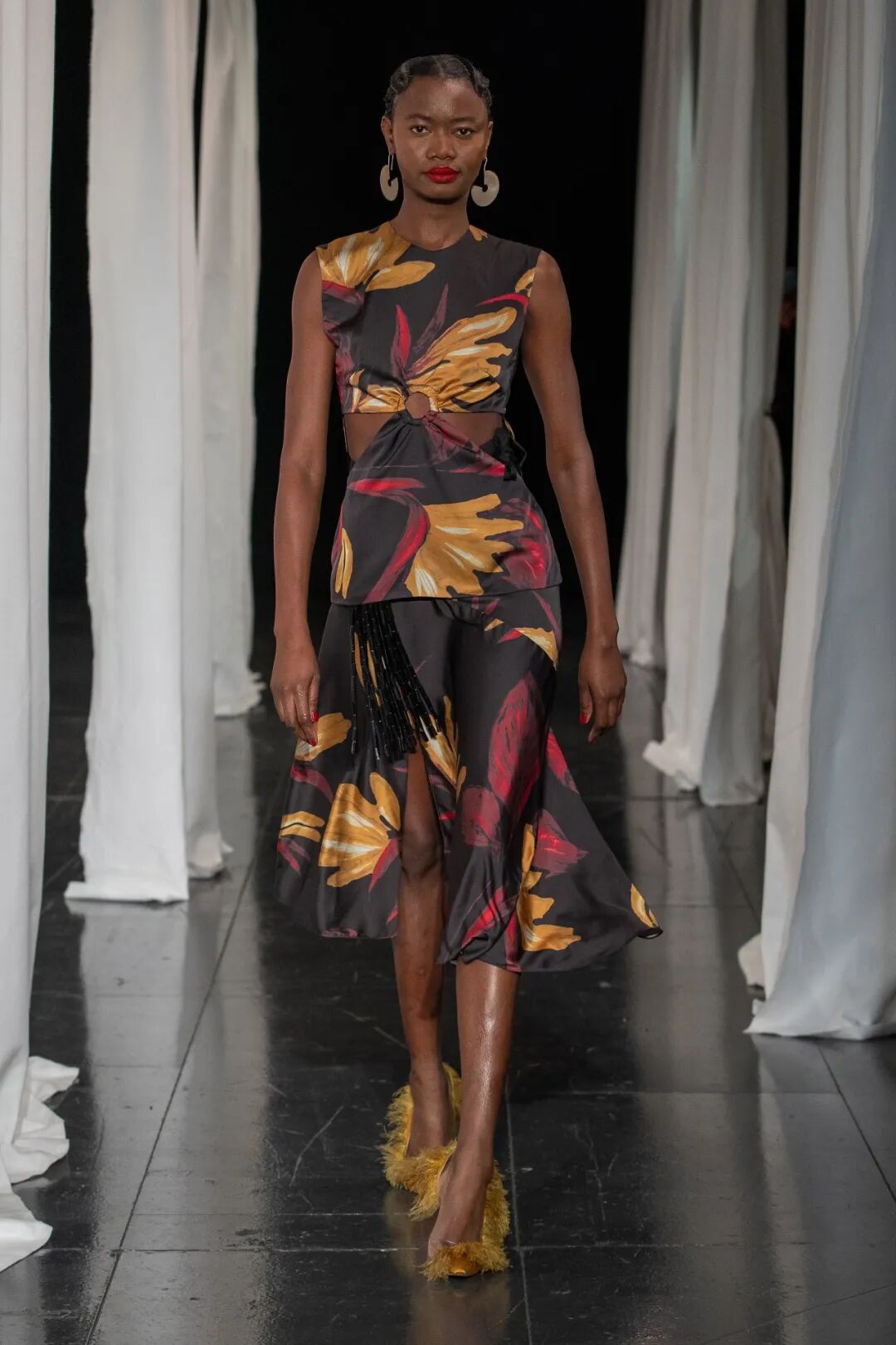 珠饰花边吊带裙和飘逸裙装是与同一批加纳工匠合作创作的,Feben一直致力于与他人的密切合作,无论是之前秘鲁女工所作的珠宝还是加纳工匠合作的串珠。