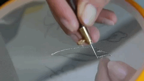 绣针:选择绣针时要注意针的两头,即“针鼻”与“针眼”。