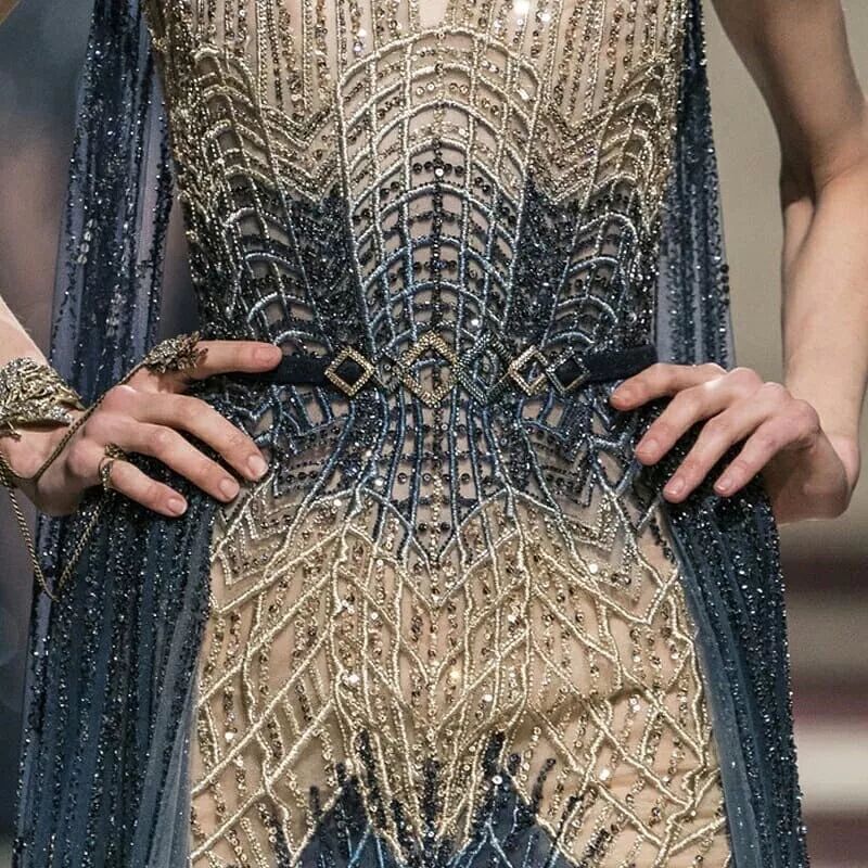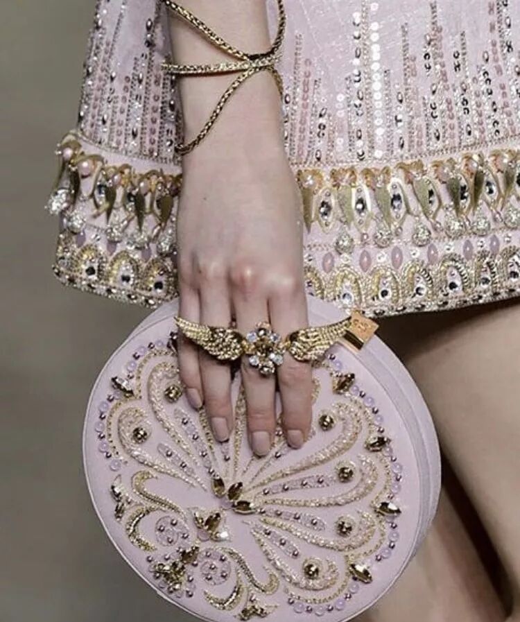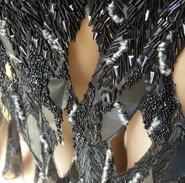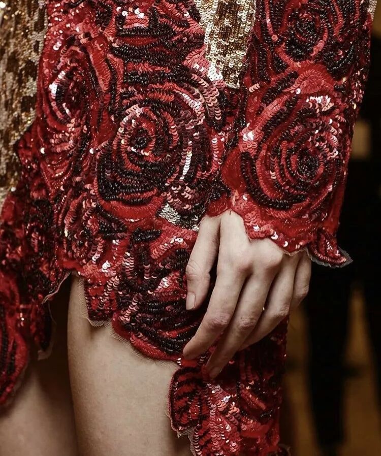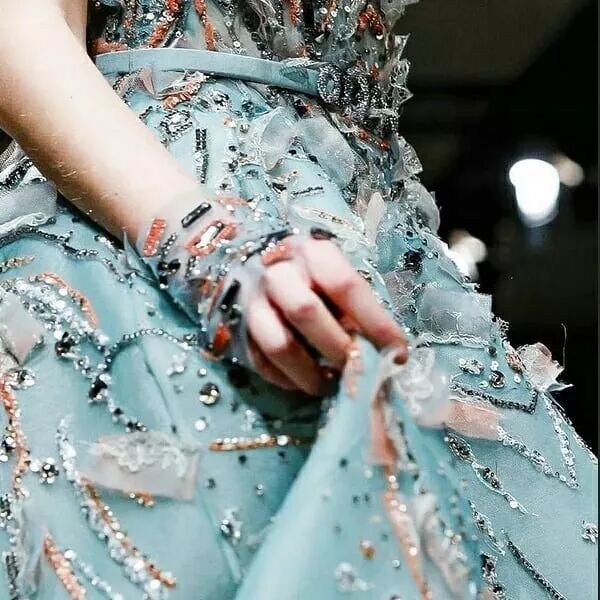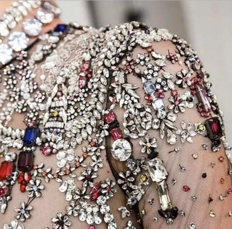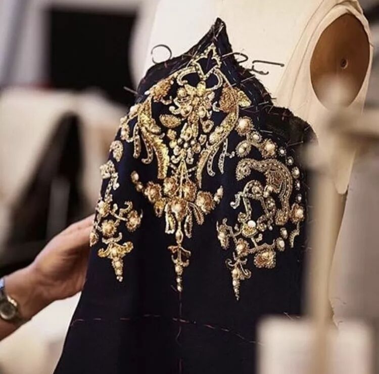 如果是中式的秀是一幅画,那么法式的刺绣就是一件雕塑。法式刺绣注重用各种材料构造出立体感,或是宝石、或是珍珠,空间上的设计是法式刺绣的玄妙之处。