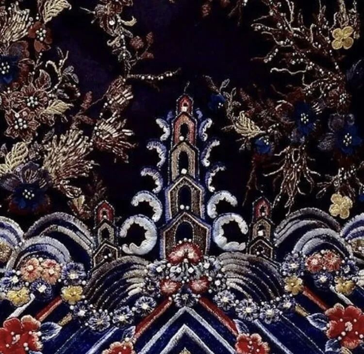 刺绣是一种中国古老的艺术技法,源于人类的纹身,在纺织业进入人们的生活之时,开始出现的纺织品上,用来作为身份的标识。17世纪左右日渐成熟的中国刺绣传入法国,成为一时风尚。