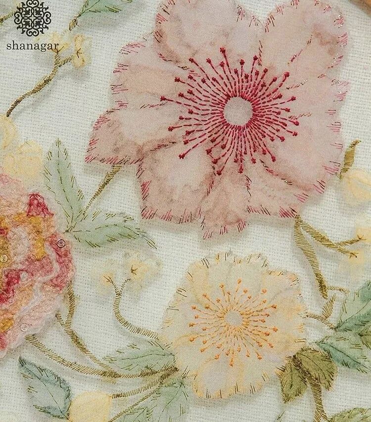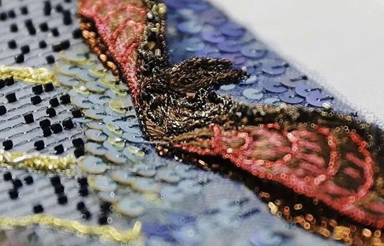 与中式刺绣不同,中式的刺绣讲究的是平顺匀齐、具有规范性和对称性,在刺绣的针法上以藏住线头为主。而法式刺绣乃至欧式的刺绣运用的材料都相对广泛,空间意识较强。两者同为刺绣,可带给人们的观感是极为不同的。