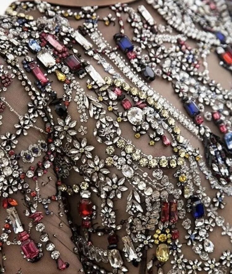 我们常会被法式刺绣那种奢华感所感染,这也正是Chanel、Dior、Elie Saab等一众一线大牌的高级定制选用它们的原因。宝石的镶嵌于金银线的穿插都让法式刺绣本身就带有价值不菲的身价。