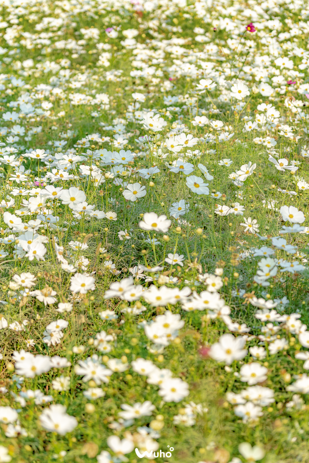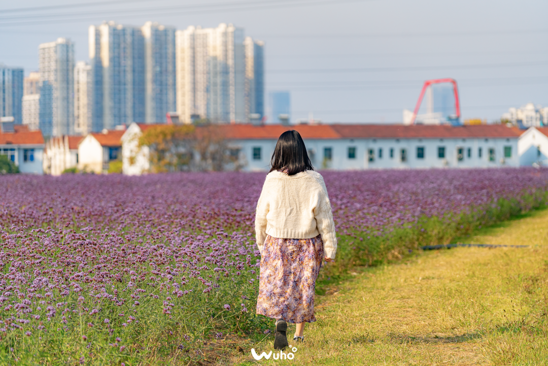 想要直达最美最大的花海,建议从公交站「欢乐大道和平村」附近的小门进入,可尽揽草地山坡。爬上山顶,还能眺望到东湖的水天一色。