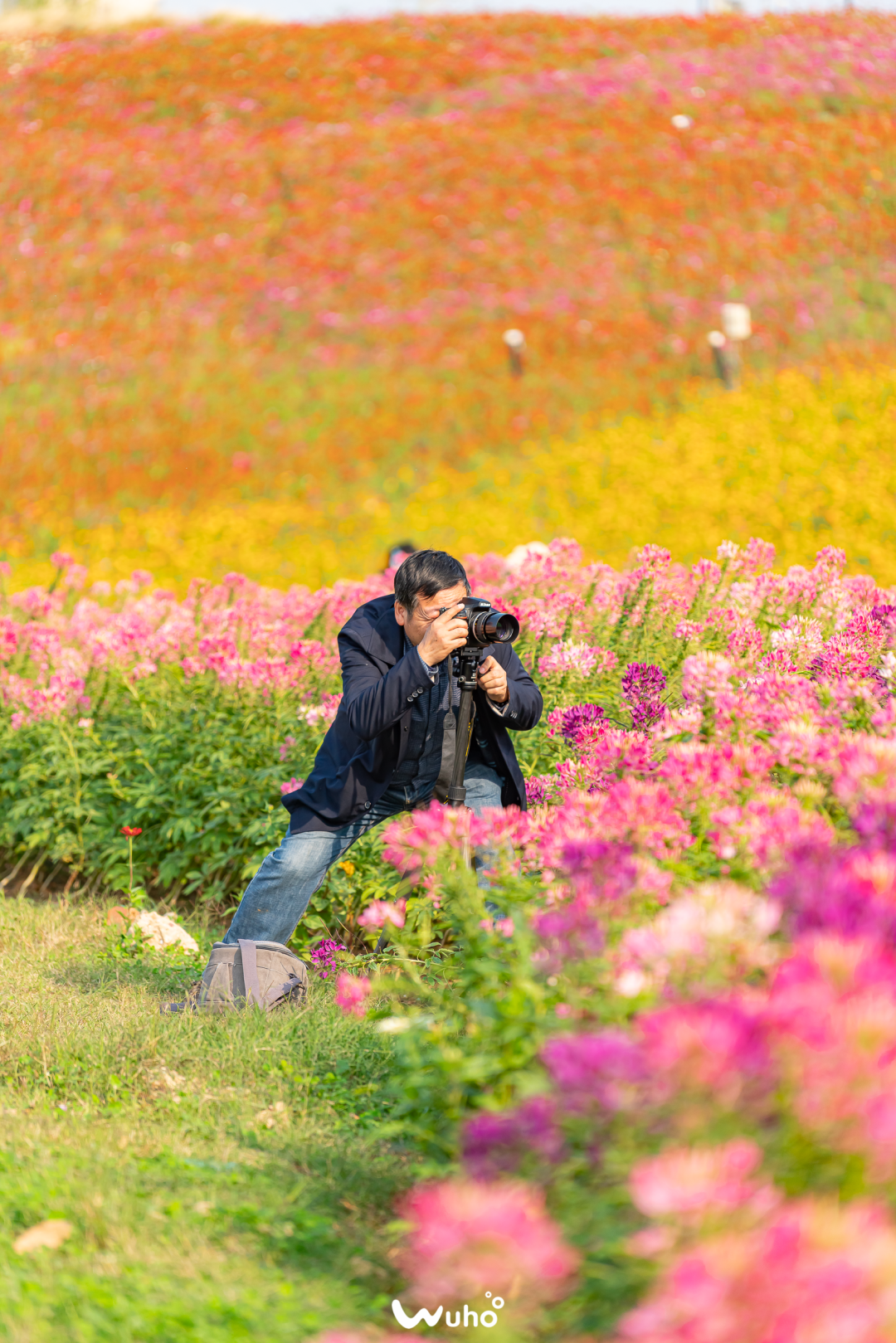 今年的花海更高级了,蓝桥下开粉雾,江边芦花浪漫如雪,粉红黄紫花坡讲究色彩搭配不说,还广阔无际。