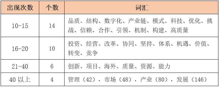 经过对热词的搜索,我们发现“发展”以146次遥遥领先,约占10200字篇幅的3%,规划的思路与“发展才是硬道理”如出一辙,不由得让人感慨,由小平同志30年前提出的这一命题,已经深入国家、行业、企业和个人的骨髓。