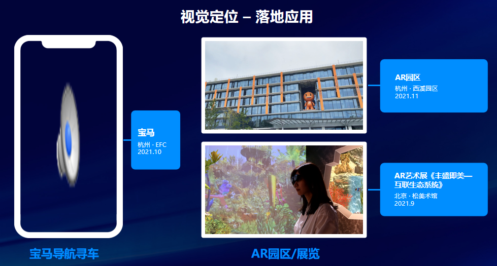最左边这里是用了非常少数的RGB相机做动态人数的三维案例,这里用了四个相机,从四个相机的画面里面可以把人物细节的三维模型构建出来,未来可以用做通讯场景当中。右边是用真人来驱动高写实的虚拟人的表情案例,我们可以用一个真人来驱动这样虚拟的形象,并且将这样的虚拟形象应用于各种各样的场景。比如一些客服等等应用。