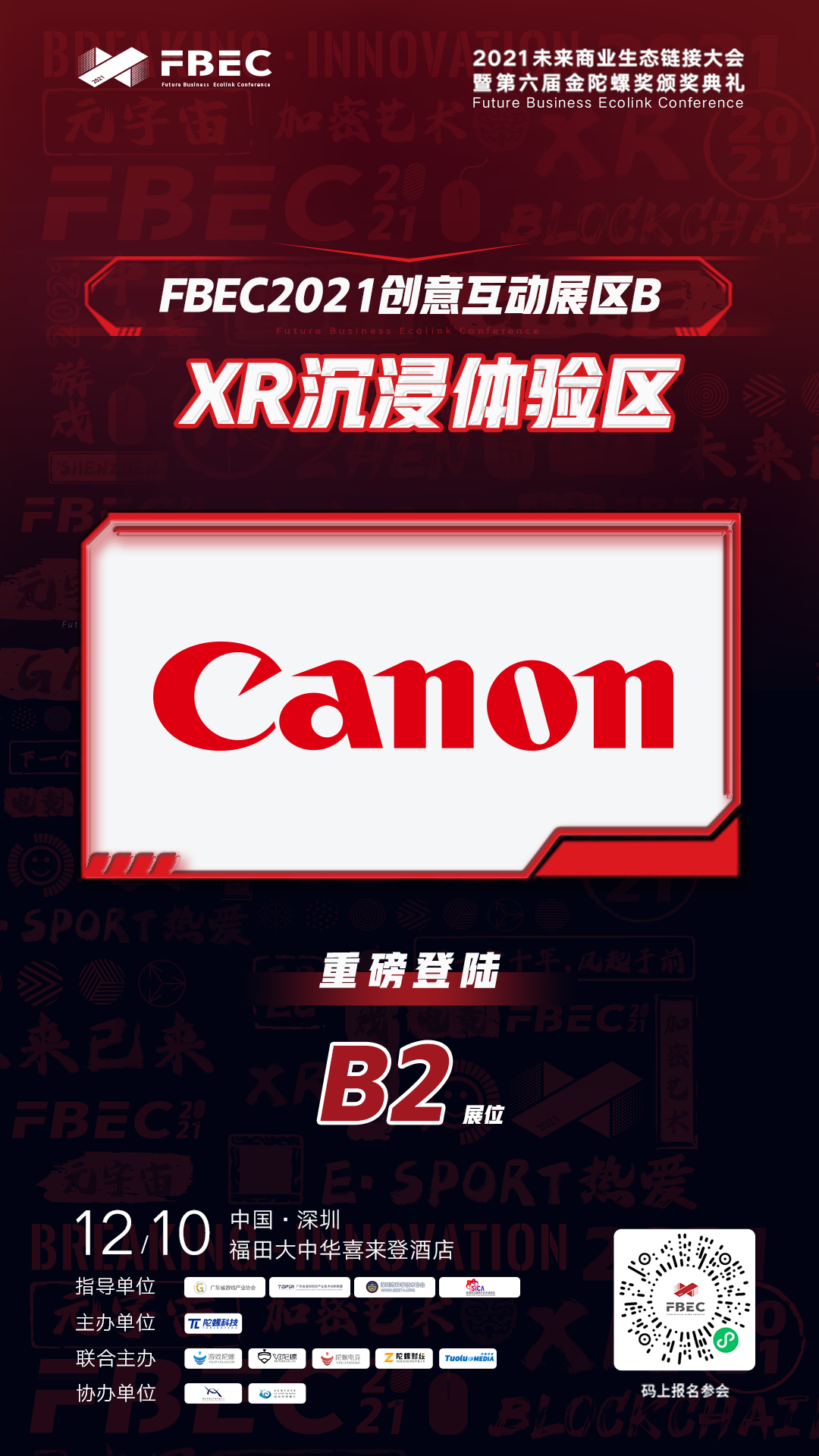 FBEC2021暨第六届金陀螺奖 2021未来商业生态链接大会暨第六届金陀螺奖颁奖典礼(简称“FBEC2021”)将于2021年12月10日在深圳市大中华喜来登酒店6楼盛大召开,本次大会由广东省游戏产业协会、广东省虚拟现实产业技术创新联盟、深圳市科学技术协会、深圳市互联网文化市场协会指导,陀螺科技主办,以“迎风破局 · 守正创新”为主题,聚焦游戏、电竞、XR、元宇宙等互联网前沿领域,探讨行业热门话题。岁末年关,聚锦鹏城,我们与无数互联网从业者同舟,共同探讨未来商业生态链接的创新和变革! |