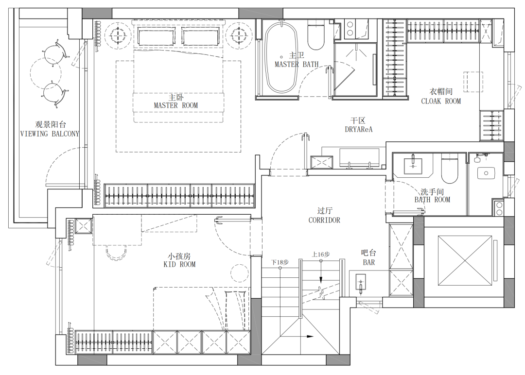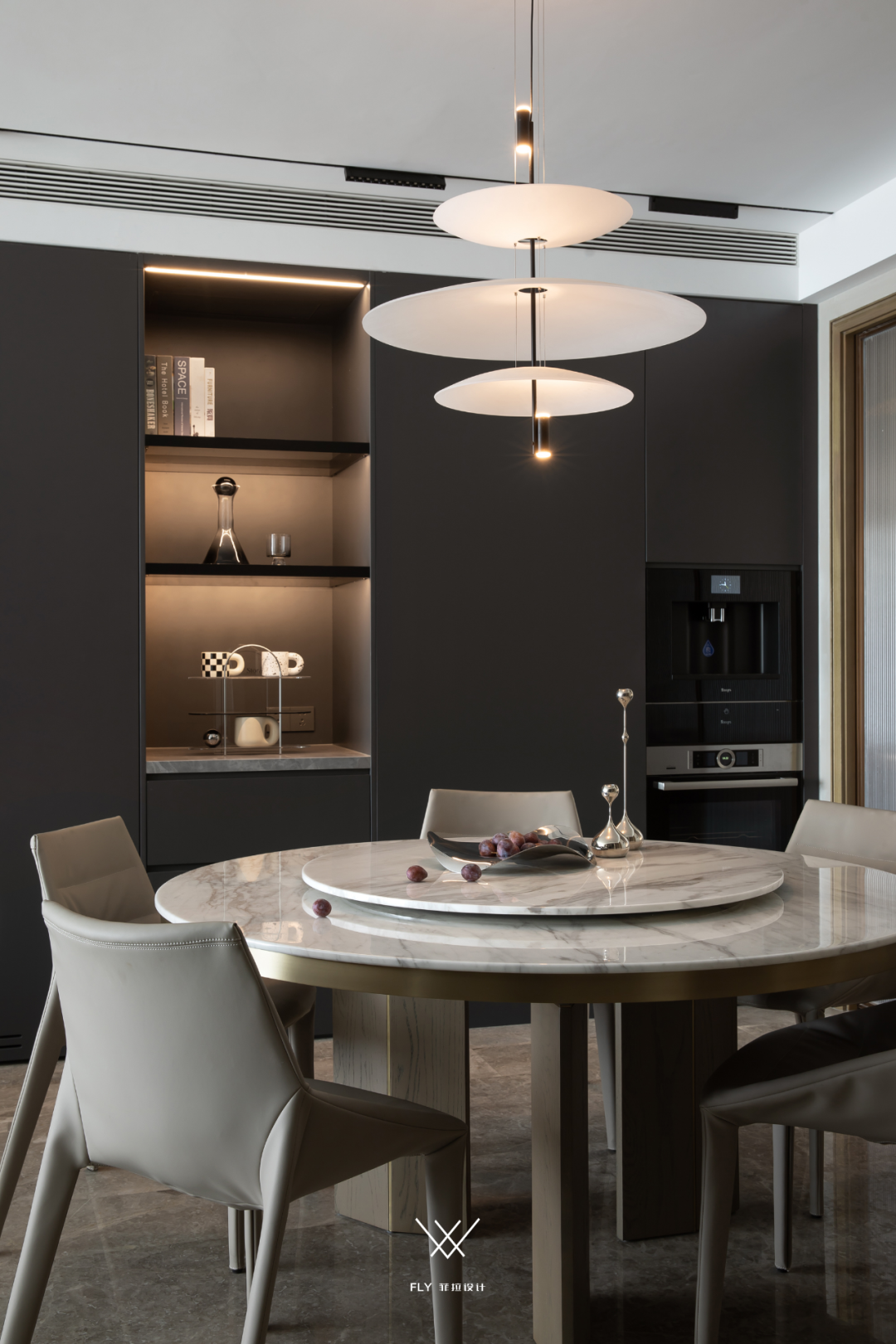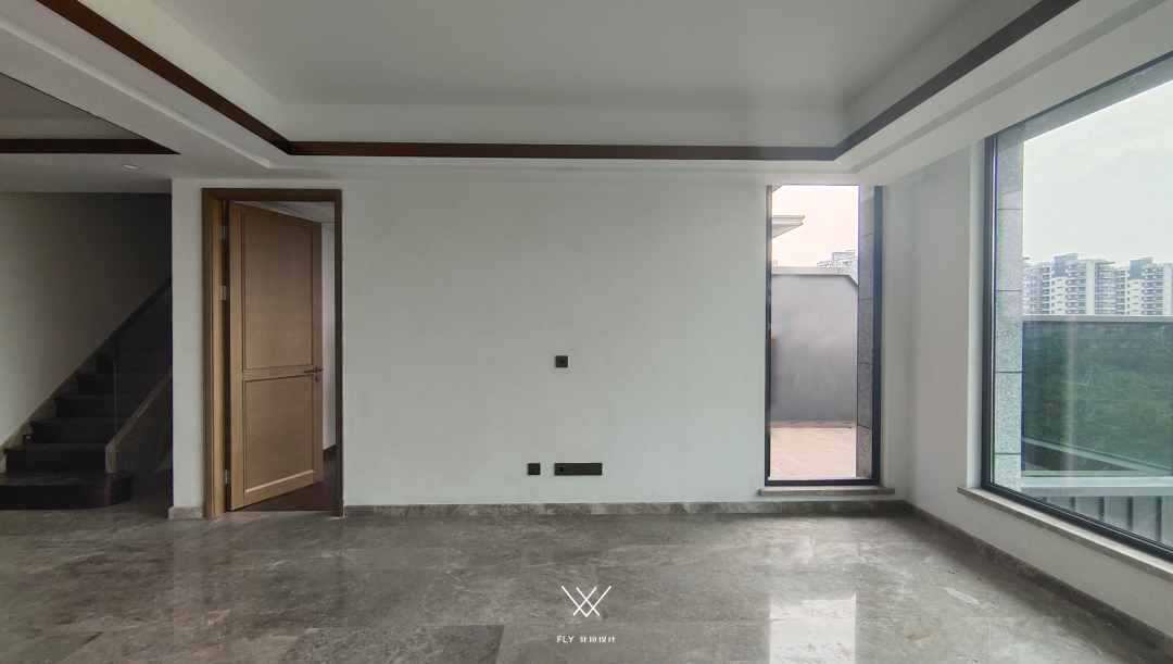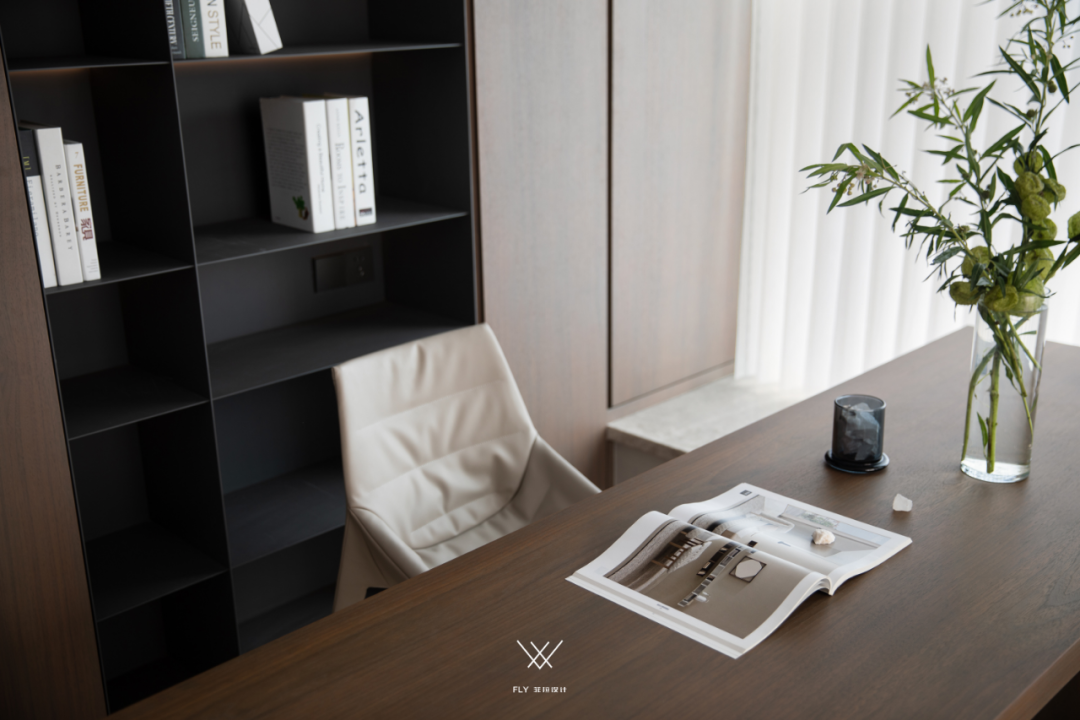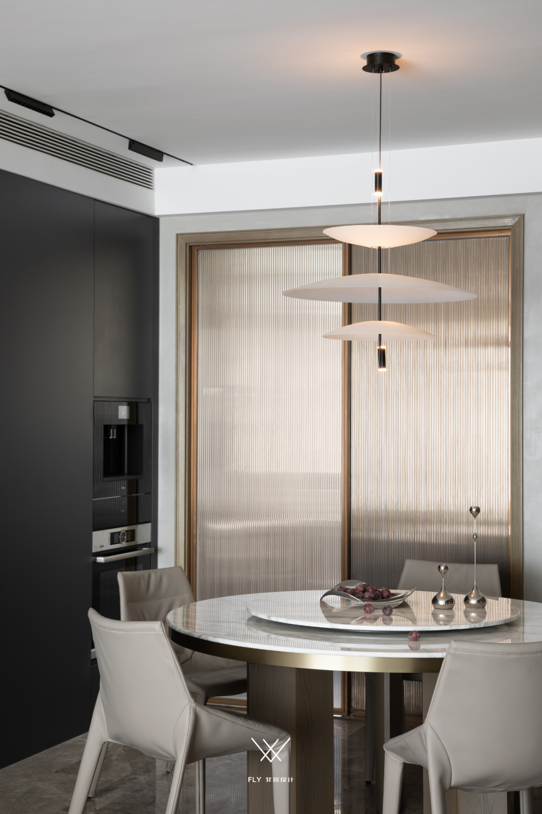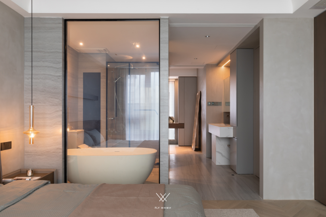 优化空间区域的完整性,次卧入口做隐形处理与电视背景墙融为一体,右侧阳台门以窗帘为掩做视觉清理,以纯粹的比例塑造空间感受。