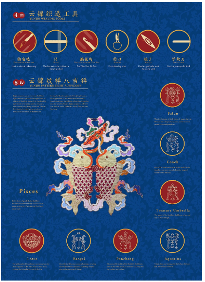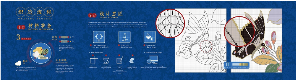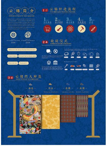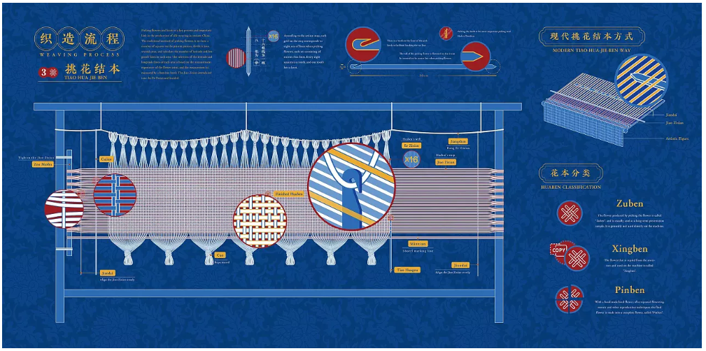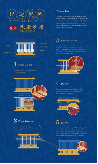 本作品以南京云锦织造工艺为主要信息框架,视觉化的信息图形为主要表现手法,图解南京云锦文化的相关内容。