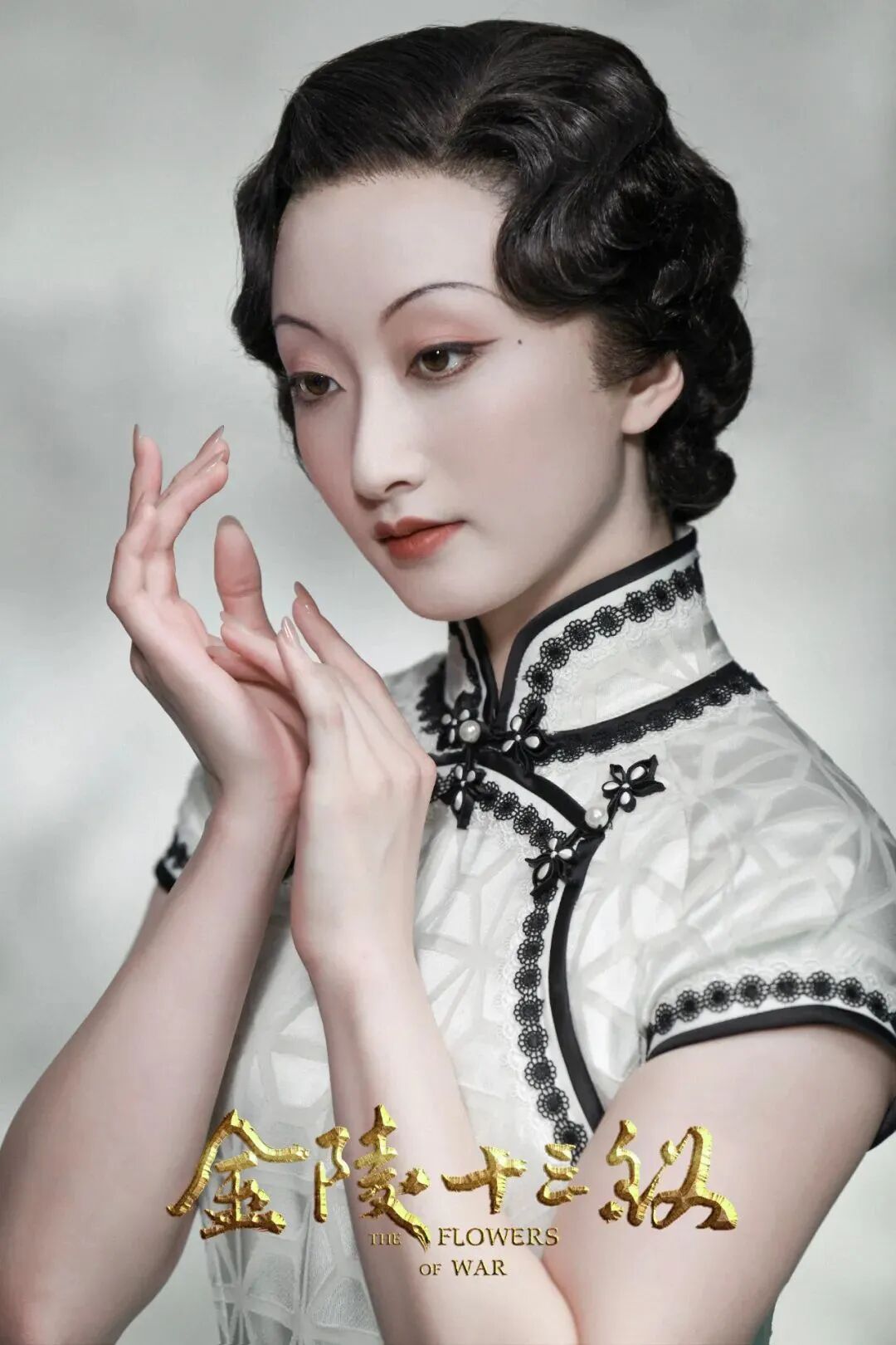序幕与尾声的⼗三钗的亡灵形象,则采⽤纯⾊的素⽩⾯料与极简的⿊⾊绲 边结构线条,点缀精致的⼿⼯花扣,与秦淮倩影的极繁形成反差,暗喻歌⼥的 牺牲,象征其灵魂的升华,发掘旗袍语汇的多种表达空间。