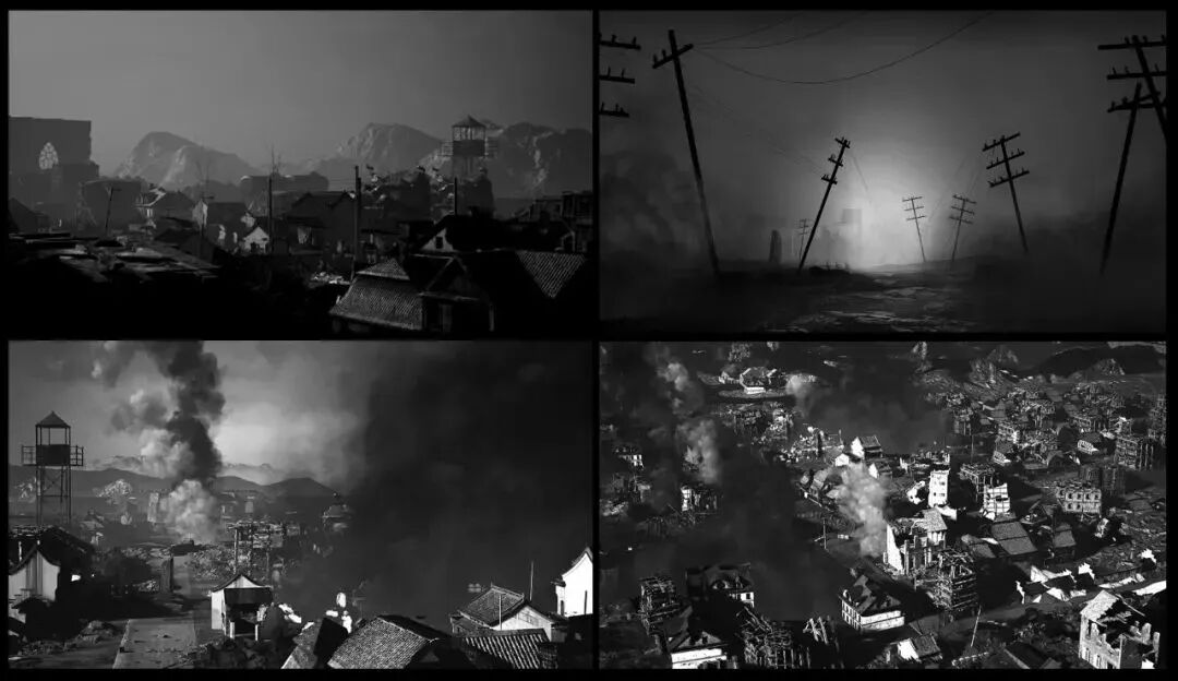 《拖尸》篇章,为了配合剧情和表演,尝试了多种风格表现扬子江畔无数尸体的景象