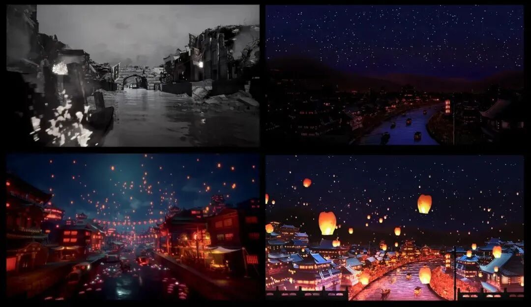 影像中严谨的还原历史的场景和道具的真实性,从南京城到秦淮河,在三维软件中进行了复刻,在品质上也在追求影视特效的高度,使用了大量的新技术手段,全部的内容由UE5引擎制作,为了更好的还原人物的动作,在影视动捕棚进行了数据的采集,经过了复杂的布料和毛发解算以及特效模拟计算。