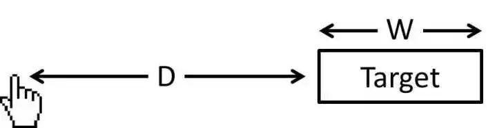 上图这个复杂的公式不用细看了,这个法则主要讲的就是,鼠标点击一个按钮的难度,和距离成正相关,和按钮的尺寸成负相关。