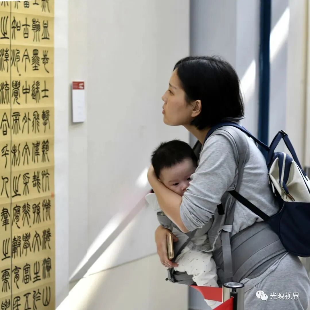随图文字:怀抱着宝宝看书法展,既是给自己充电,更是在潜移默化地给宝宝予熏陶。