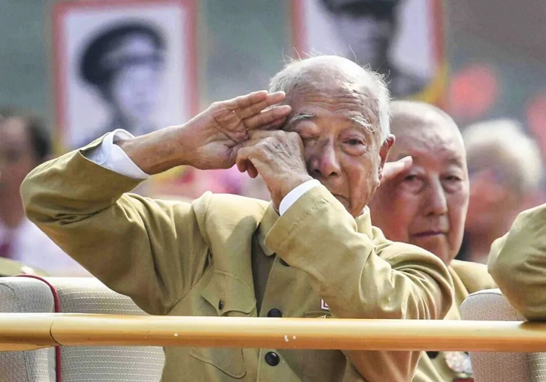 李尕作品。需要标注内容为:“2019年10月1日上午。庆祝中华人民共和国成立70周年大会。北京天安门广场。“致敬”方阵中的老兵关茂林,1949年开国大典时,曾在天安门西侧机动待命。”并不是每张图片都需要如此详细的人物信息,但是关茂林是唯一参加阅兵的“开国大典哨兵”,他的身份是作品的特殊亮点,整理时需要特别注明。