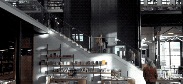 纵观整个图书馆,会发现室内空间非常庞大,旧有的工业气息被赋予了全新的表现力。