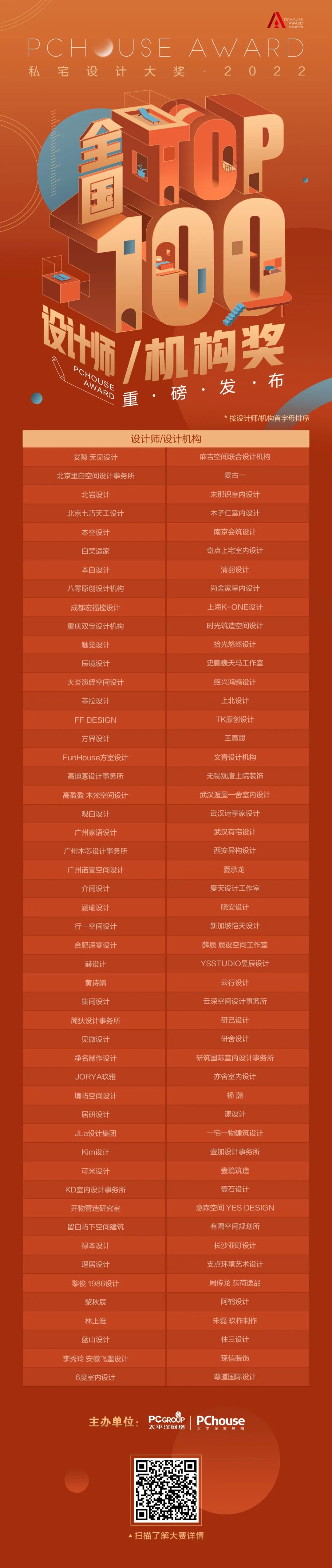 2022PCHOUSE AWARD私宅设计大奖·全国TOP100设计师/机构奖