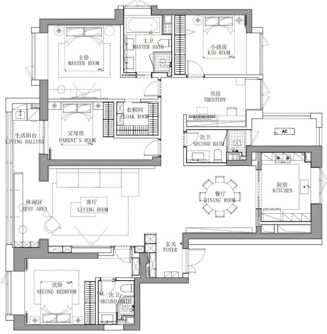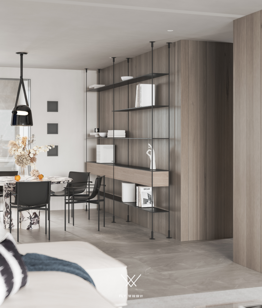 期待以纯粹、新潮的面貌让空间与人彼此倾诉,大平层精装改造,去除繁杂冗赘的刻意,落俗的色调与装饰,寻求空间的一体共述,新型材料与造型穿插的精雅与考究,就让时光伴着审美浪潮的更迭验证空间美感的耐久性。