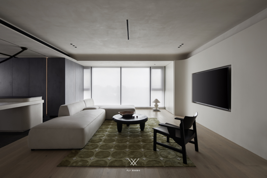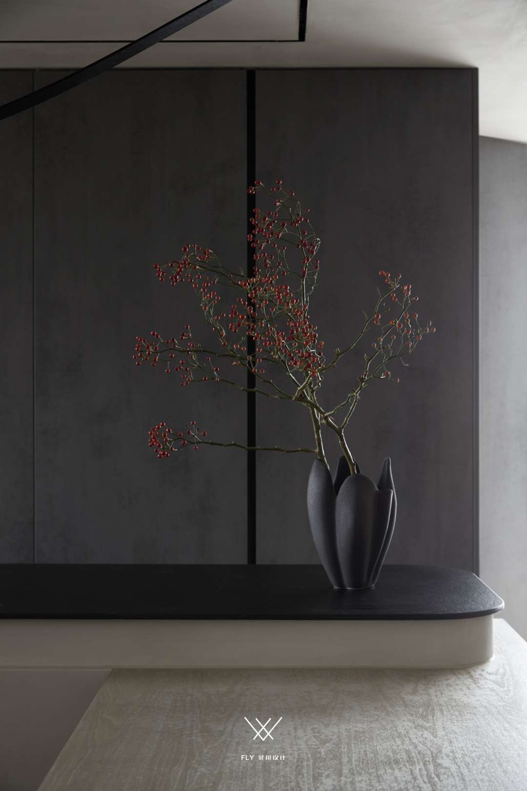 本案地理位置优越,位于西溪湿地旁,大开间的户型采光极佳,业主是一位90后男生,一个人居住的他希望家是现代又带有一些侘寂的风韵。每个功能区内部的处理、区域之间的联系互动,都可以感受到设计手法与空间特点的美好共处,逻辑与美学的联袂呈现。在色彩上亦有出挑的发挥空间,典雅的黑、时尚的银、以及那可谓妙偈的绿与红,都在这个空间内得到和谐而极致的表达。