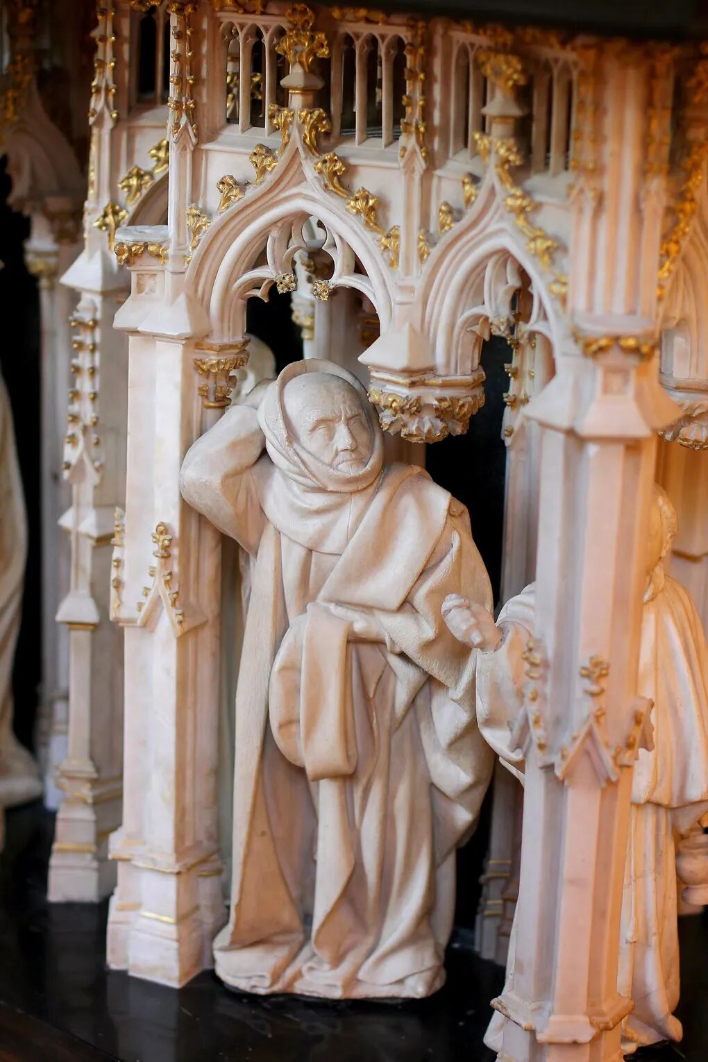 腓力二世夫妇墓室除大公夫妇雕像外,还制了40个送葬的人物行列像,每个像都有41厘米高,神形各异,十分壮观,显示了克劳斯•斯吕特的高度写实的塑造功力。