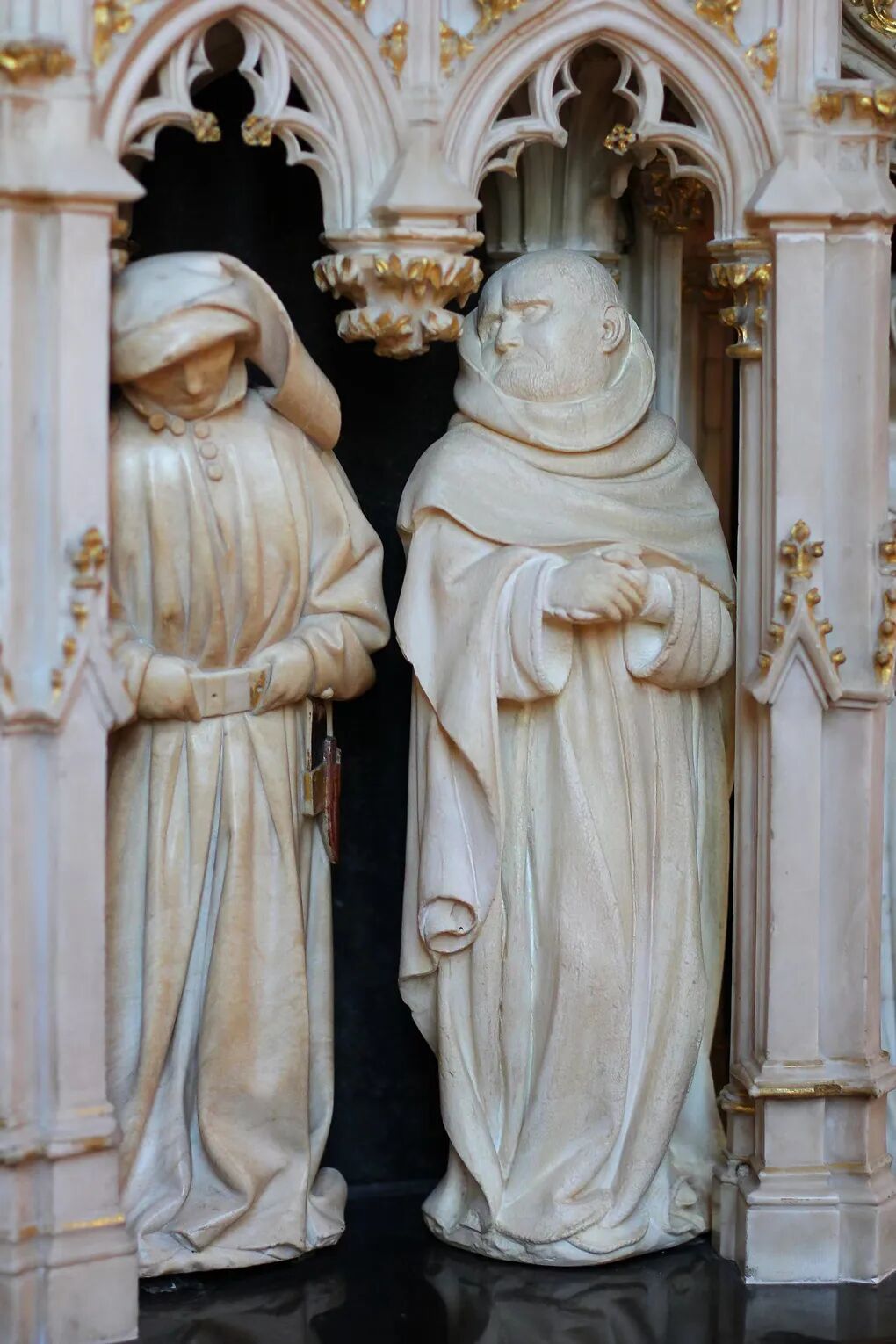 大家好!今天给大家介绍法国第戎雕塑家克劳斯・斯吕特为勃艮第公国腓力二世夫妇制作的,准备摆放在他们二人去世后位于加尔都西会修道院内的墓室,以及墓碑上的雕像。