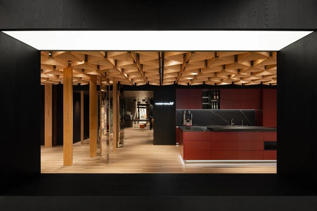 大体块红色烤漆产品的展示,帮助体验者迅速识别菲林格尔独特的产品语言。突破固有思维局限,提前介入产品设计,打破了空间与产品结合的不确定性,提供整体空间的情绪把控。
