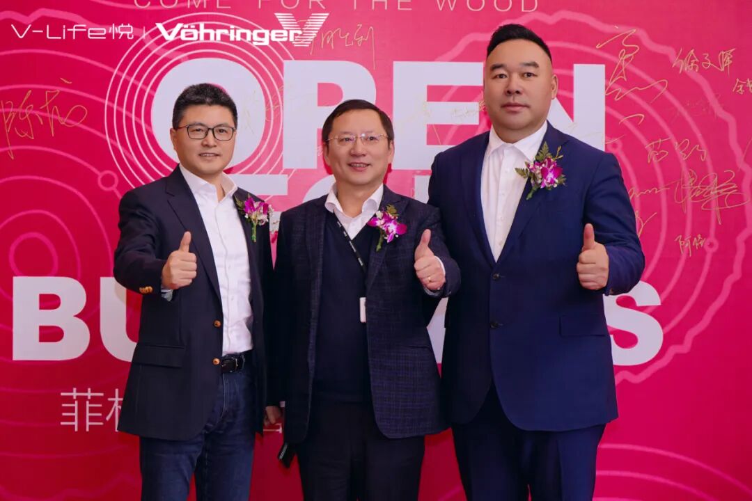 菲林格尔家居科技股份有限公司总裁刘敦银&上海市室内装饰行业协会会长徐国俭&上海营销中心总经理于胜利出席