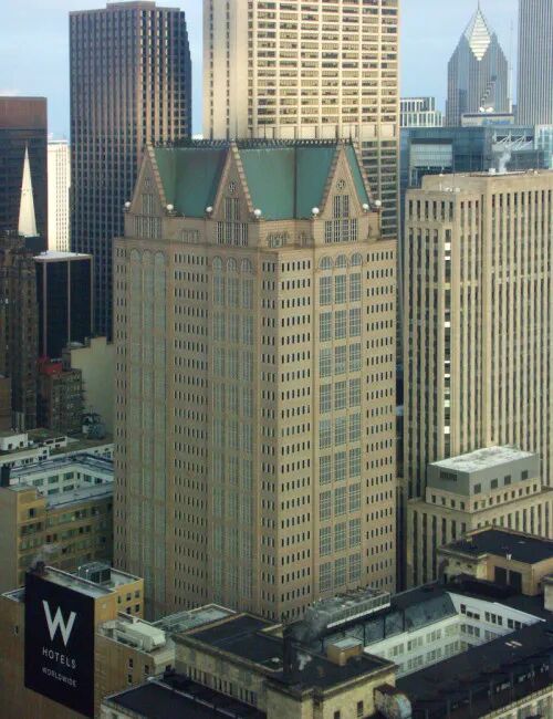 「190 S. Lasalle」大楼高 174 米,共有 40 层,是一座拥有 74,230㎡ 的综合建筑,竣工于 1987 年,由首位普利茨克奖得主著名的建筑师菲利普·约翰逊和他的合作伙伴约翰·布尔吉「John Burgee」共同设计。