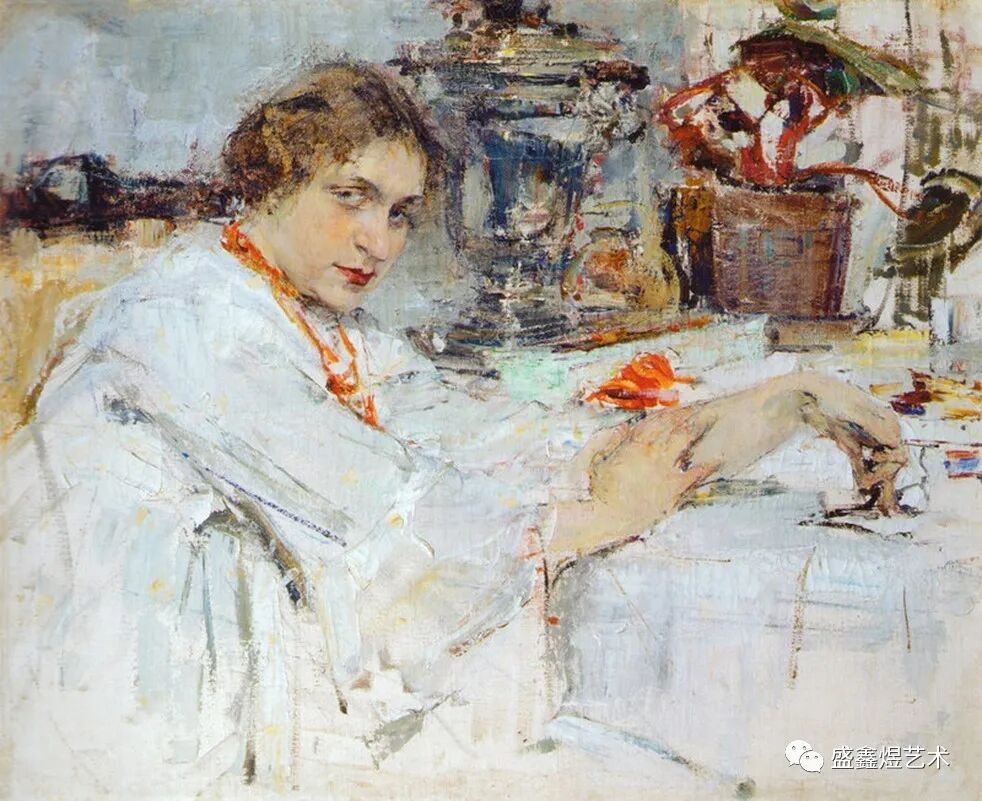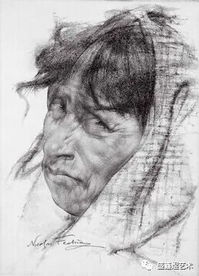 尼古拉·费钦(Nikolai Ivanovich Feshin1881 年- 1955 年)是一位俄裔美国画家,以其描绘美洲原住民的肖像和作品而闻名。在以最高分从帝国艺术学院毕业并在罗马大奖赛下游历欧洲后,他回到家乡喀山,在那里任教和绘画。他于 1910 年在宾夕法尼亚州匹兹堡的国际展览中展出了他在美国的第一件作品. 在 1923 年与家人移民到纽约,费钦患上了肺结核并搬到了西部以寻求更干燥的气候。他和他的家人定居在新墨西哥州的陶斯,在那里他对美洲原住民和风景着迷。他在陶斯修缮的土坯房被列入国家史迹名录,并被用作陶斯艺术博物馆。1933 年离开陶斯后,费钦最终定居在南加州。