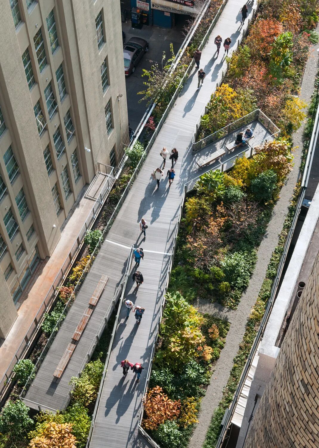 高线曾经是为整个城市提供重要服务的铁路,今天,高线公园是一条连续的1.45英里长的绿道和拥有500多种植物的公园,并继续作为曼哈顿西区及其他地区不可或缺的资源。