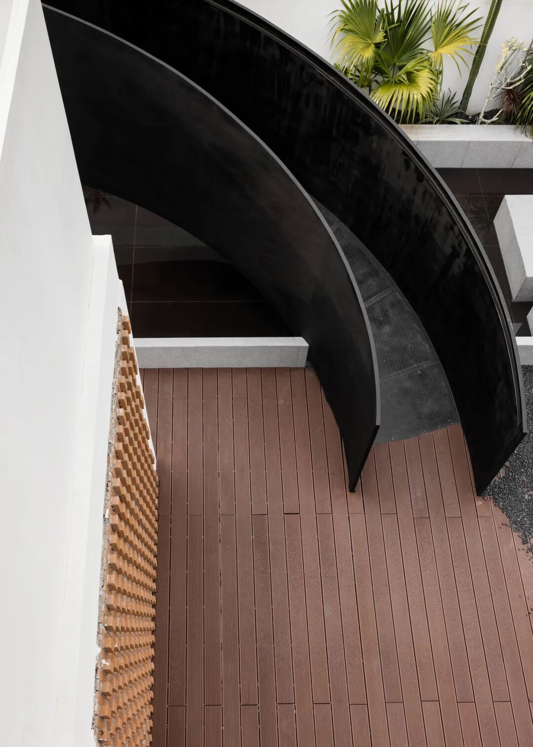 Running towards the sun is a theme throughout human history, not only in the outward appearance of the interior, but also in the upward movement of the outdoors. The black metal ladder extending toward the sun is the flowing shadow of the sunlight. It undertakes a direct warmth, and also realizes an eternal meaning.