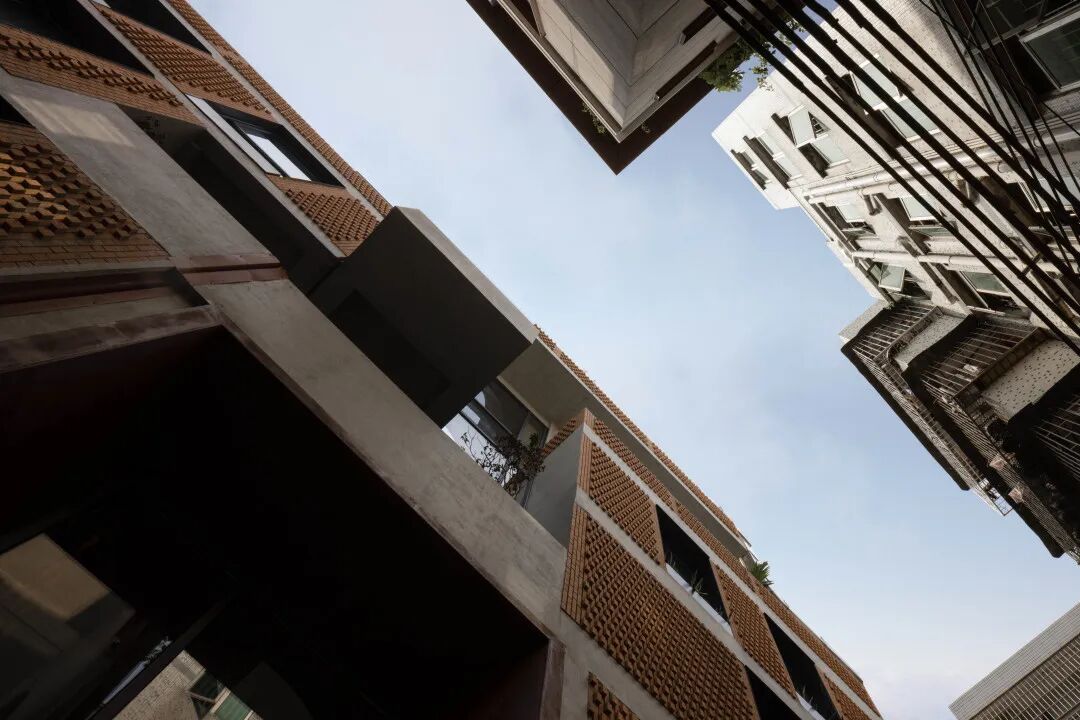 The interior space takes the built-in patio as the central axis, and holes are opened at the top of the space and on the walls of each floor, which changes the problem of unclear lighting due to the close proximity of shops. The inflowing light enhances the visual brightness, changes the light and dark levels of the space, and connects the narrow and long internal structures into a whole.