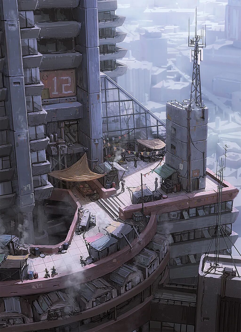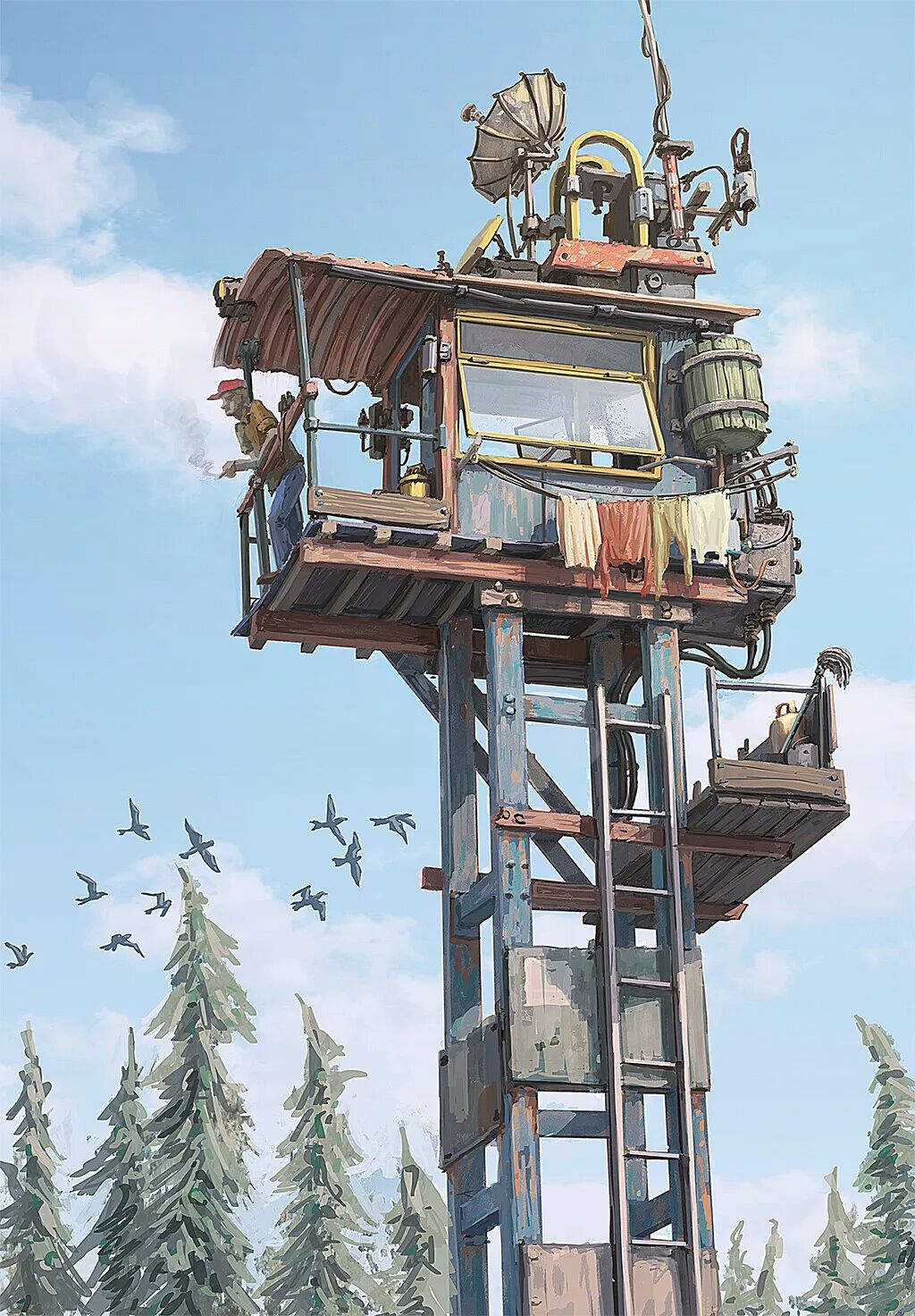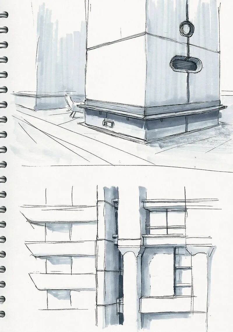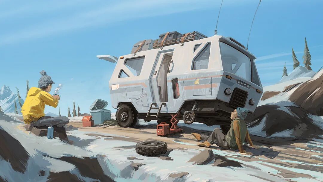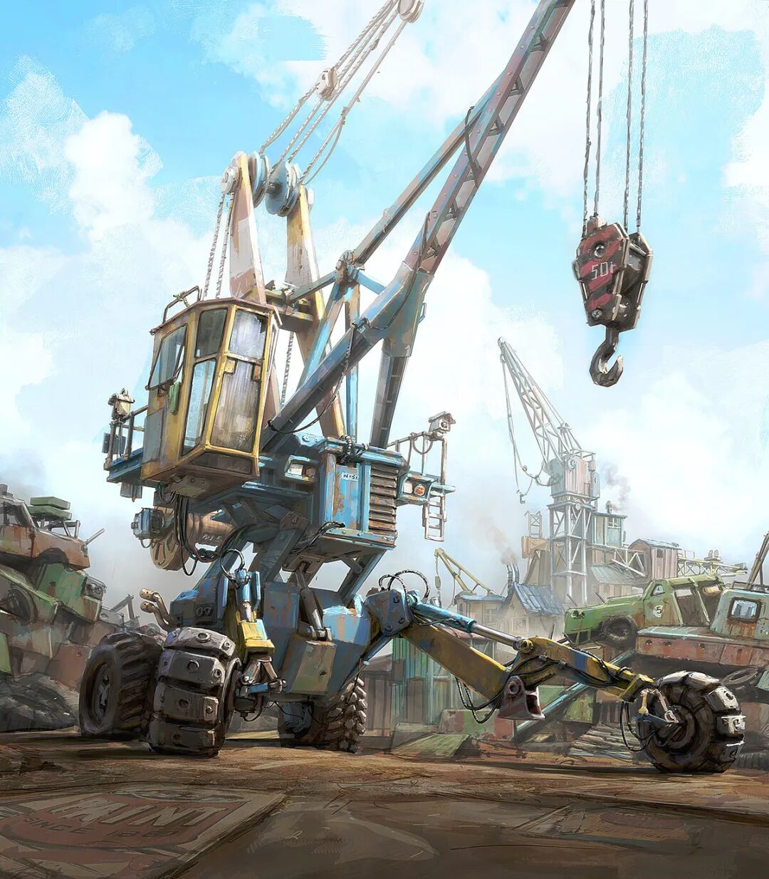 Hamish Frater的个人作品大多都是末日废土风科幻机械设计,他喜欢将各种陈旧的机械部件改装组合在一起,创造出新的、富有想象力的结构,作品色彩比较复古,特意保留的笔触感、划痕以及锈斑凹痕等细节的添加使得整体更加真实。