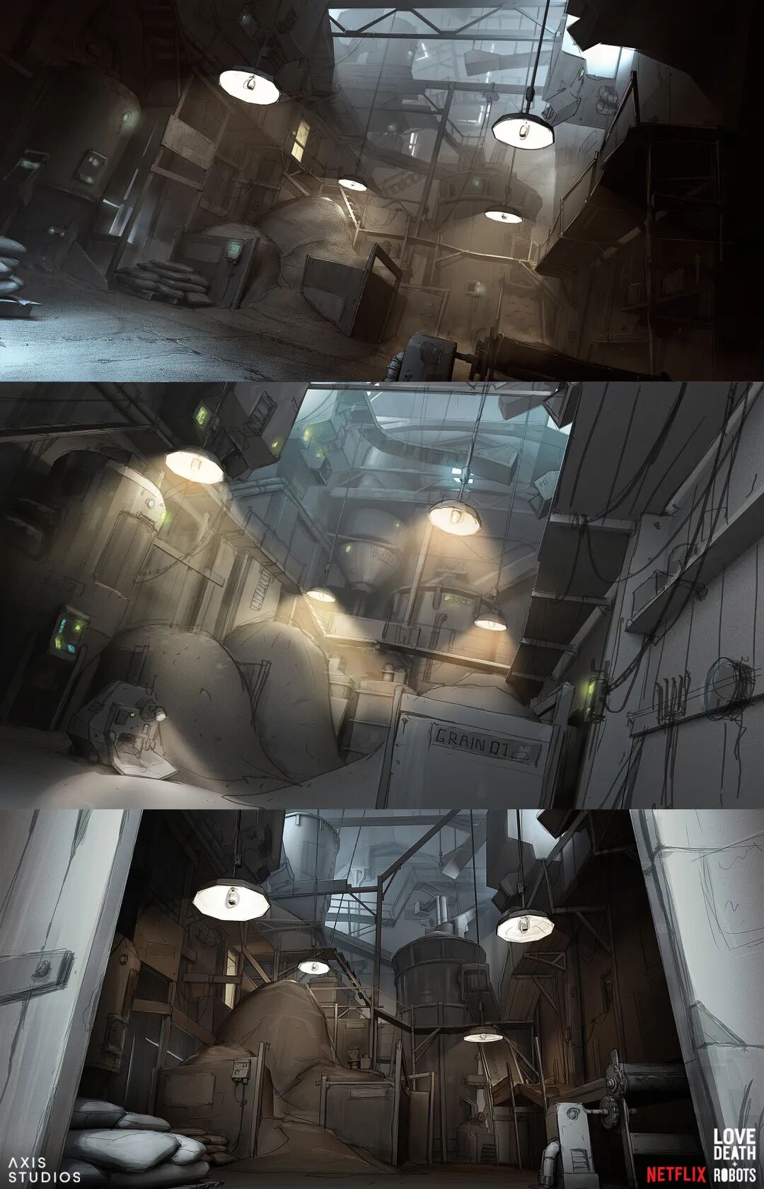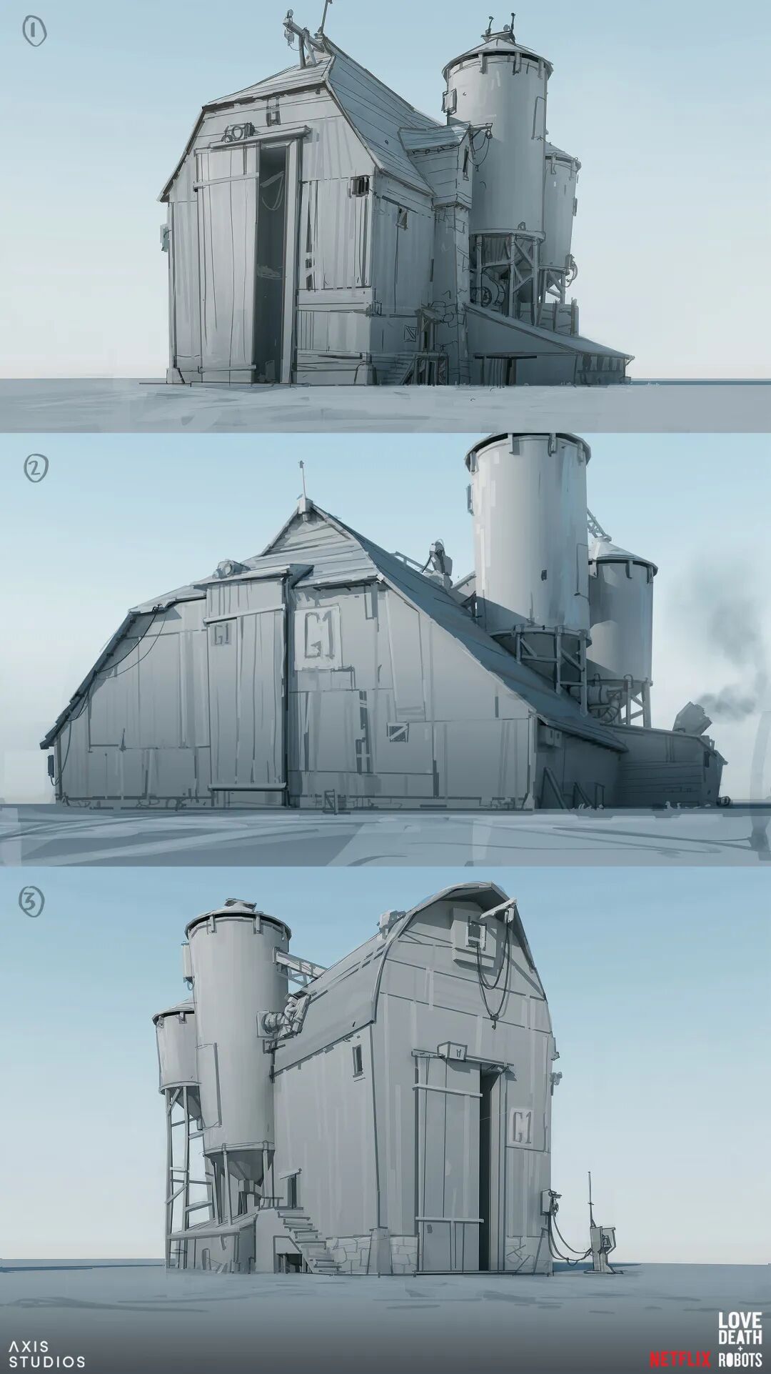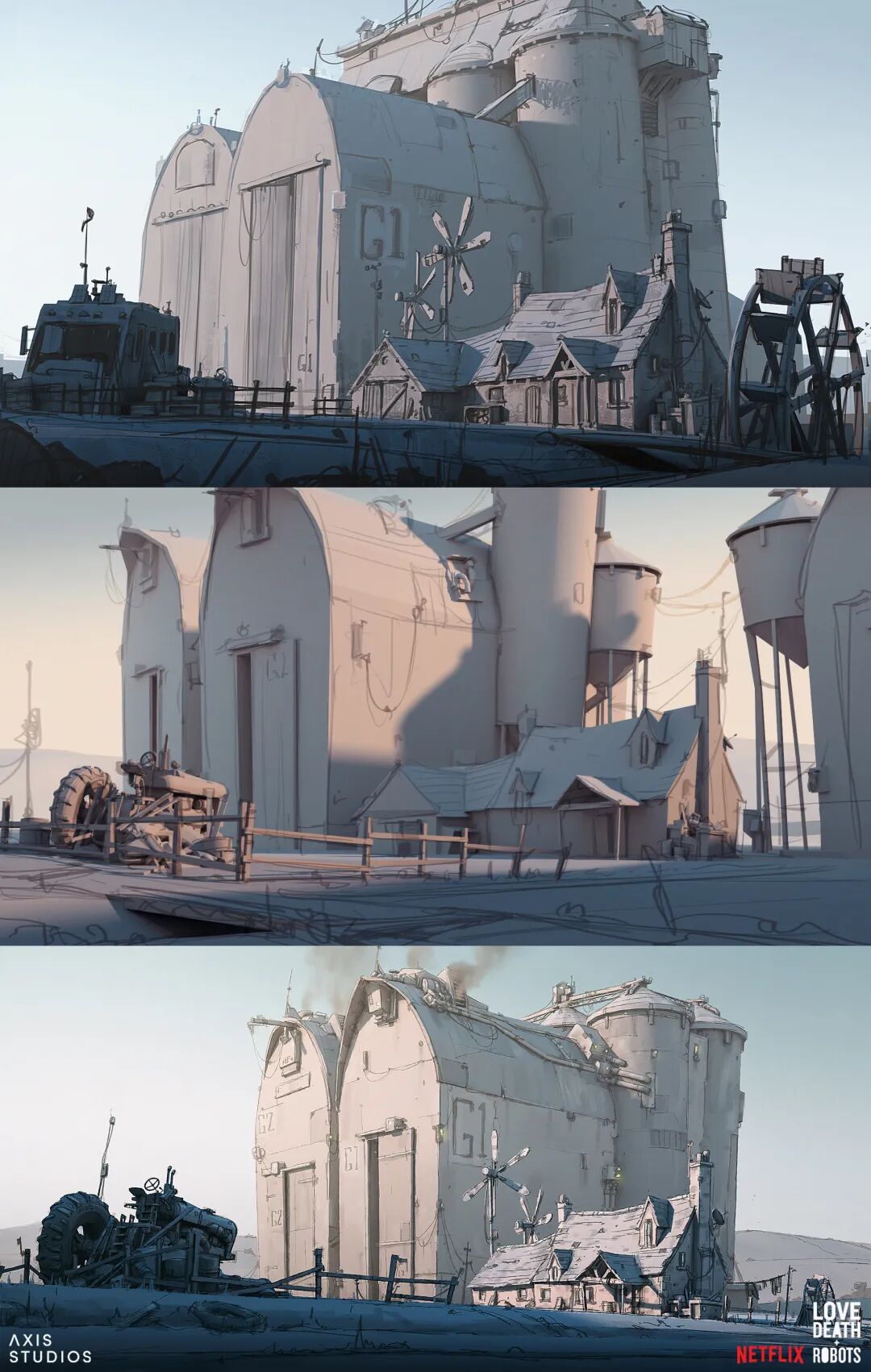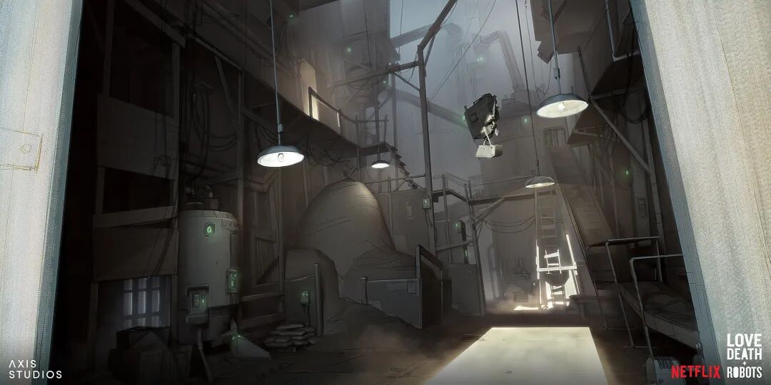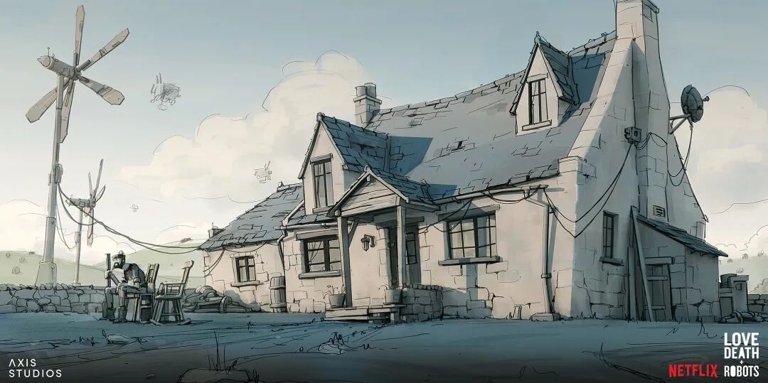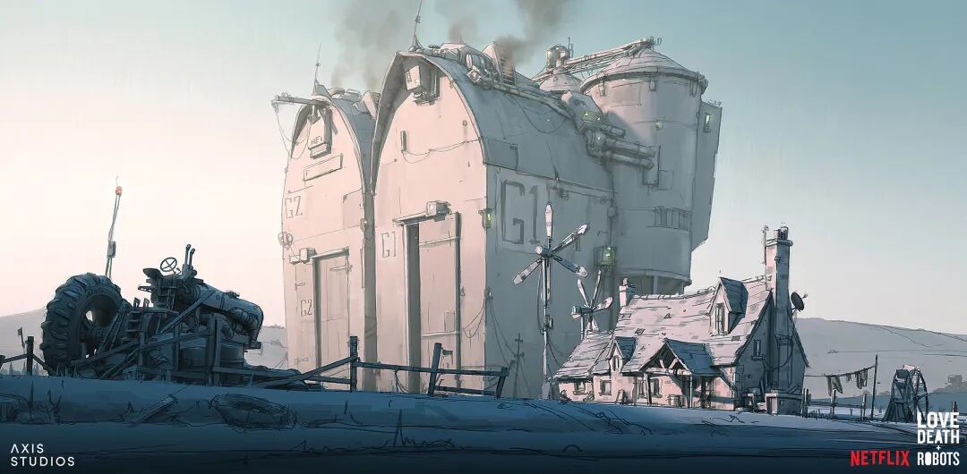 《爱死机》第三季口碑成功逆袭,其中讲述人鼠大战的《梅森的老鼠》由英国动画工作室Axis Studios制作,Hamish Frater负责为主角梅森的农舍以及农场谷仓设计内部和外部概念,他的风格与动画整体非常符合,陈旧接地气却又充满设计感。