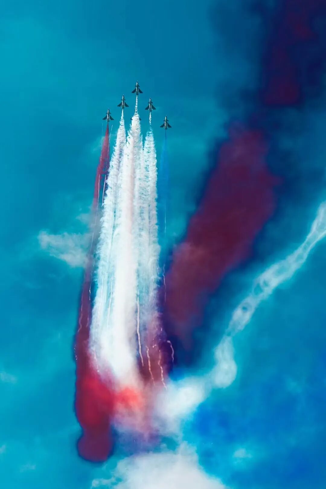 八一飞行表演队的四机向上开花表演,广东珠海,2021年  宋奎
