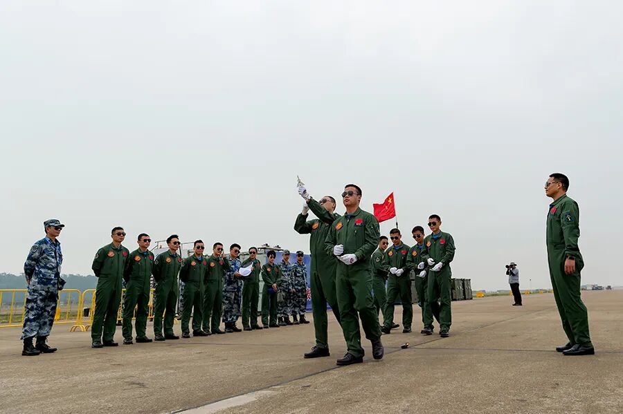 八一飞行表演队的飞行员在进行地面演练,广东珠海,2018年  宋奎