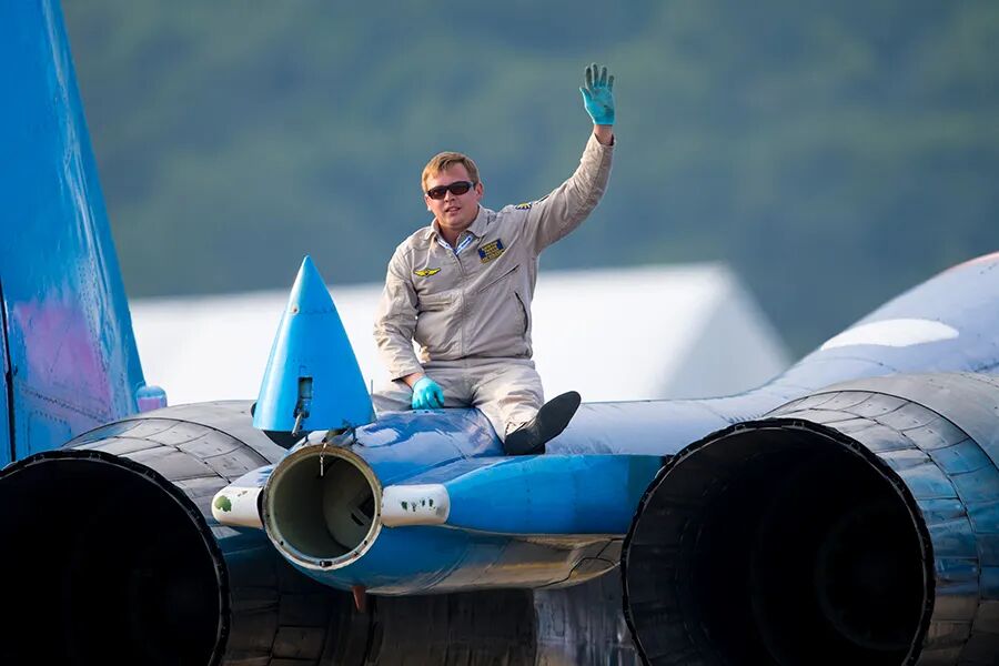 俄罗斯表演队的机务人员在检修飞机,广东珠海,2016年  宋奎
