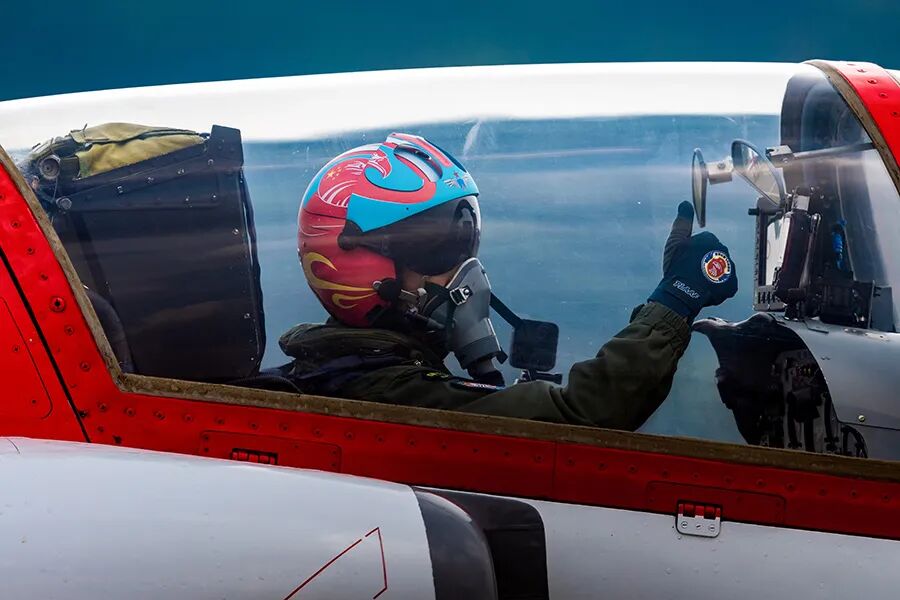 红鹰飞行表演队的飞行员,广东珠海,2021年  宋奎
