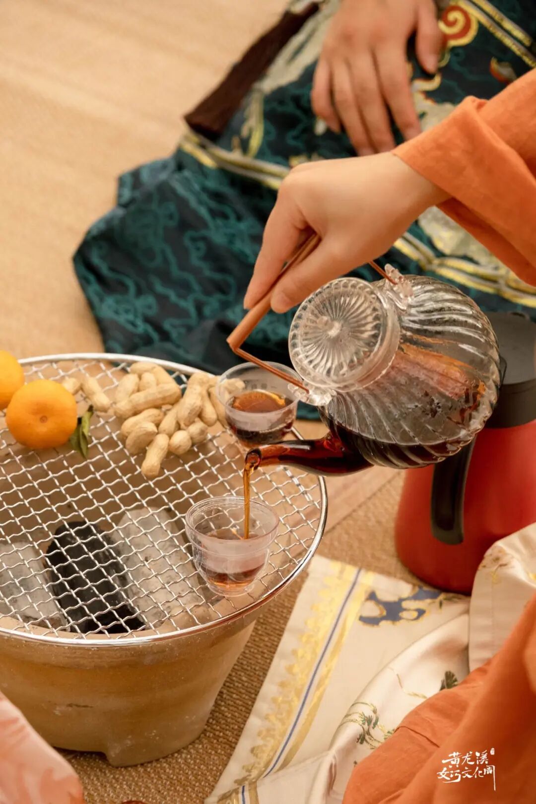 在溪畔道场举行的品茶会中,身着汉服的游人通过品茶了解中华民族的茶文化,在茶香中怡然自得。还有香水调制体验、瓷器修补文化分享、宴饮游戏、太极体验等活动再现中式古典生活美学。