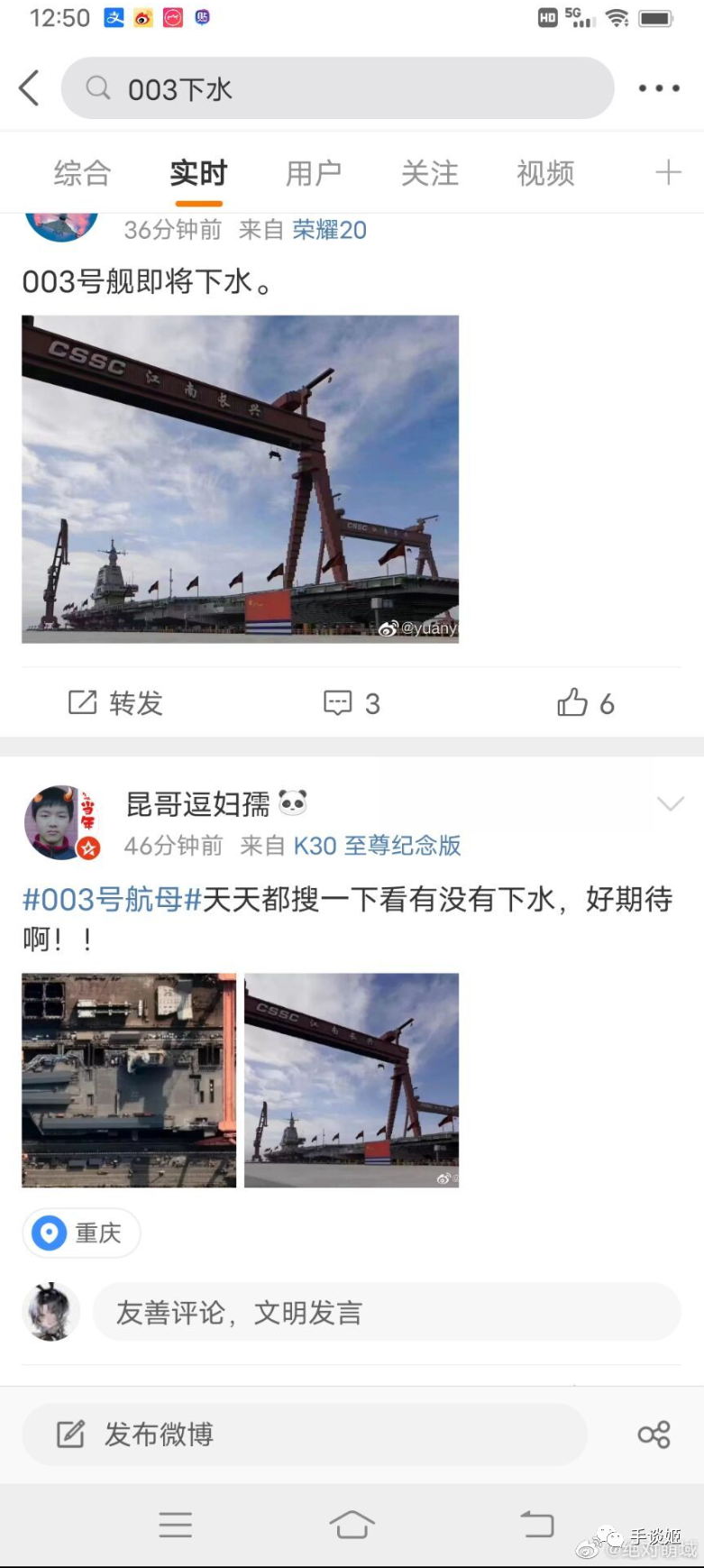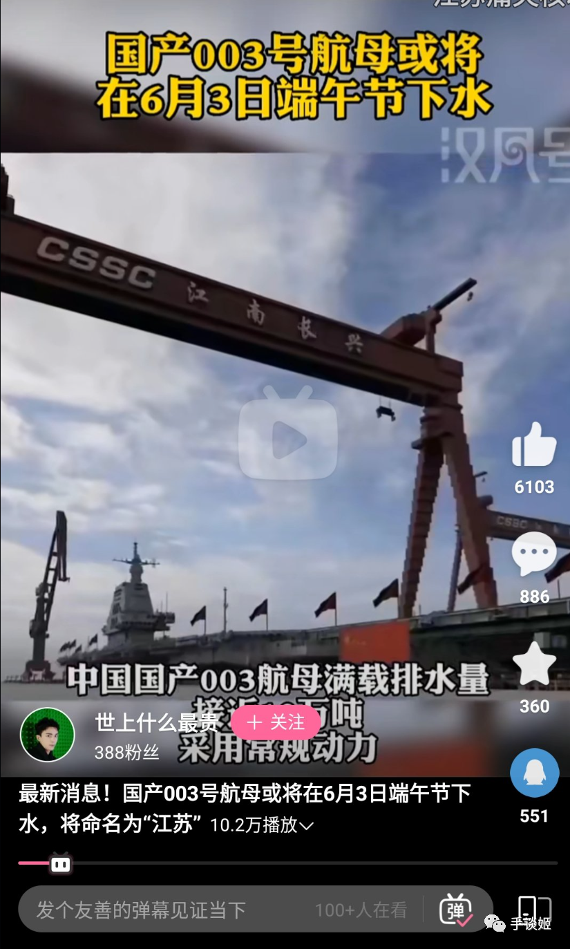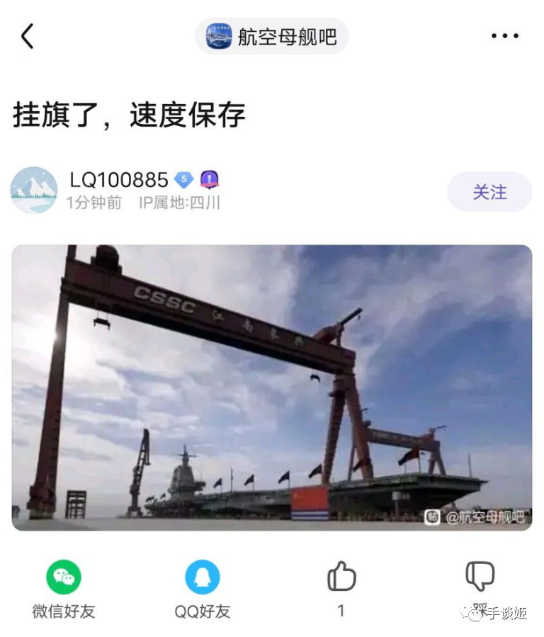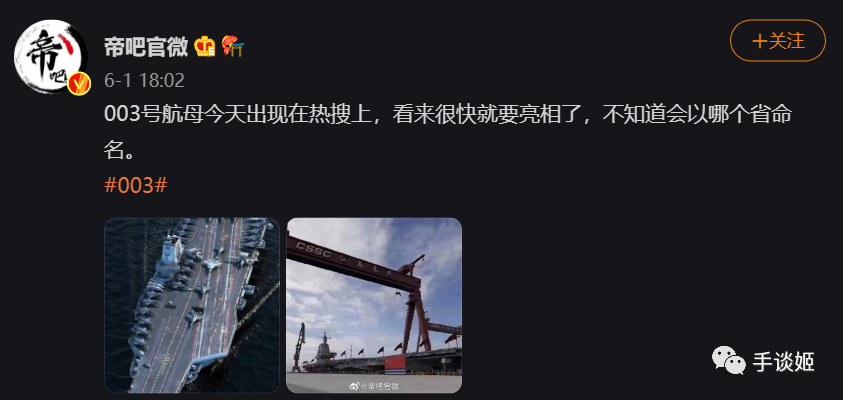 在微博上也有很多人表示003号要下水了。
